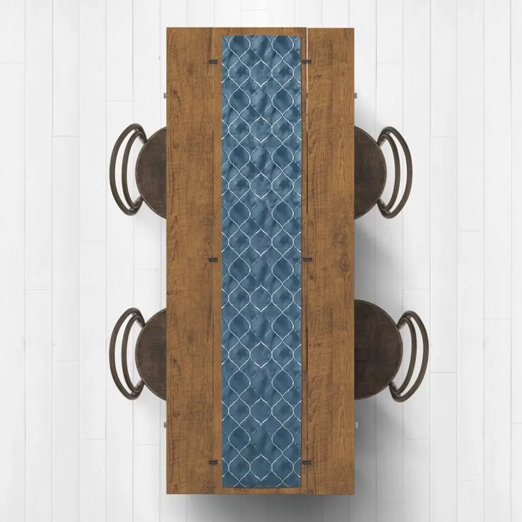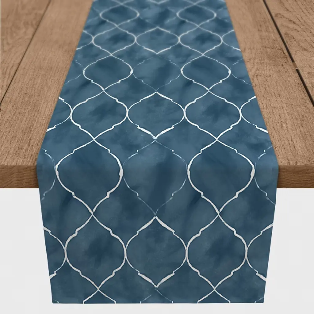 Creative Products Blue Ogee Pattern 16x90 Cotton Twill Table Runner