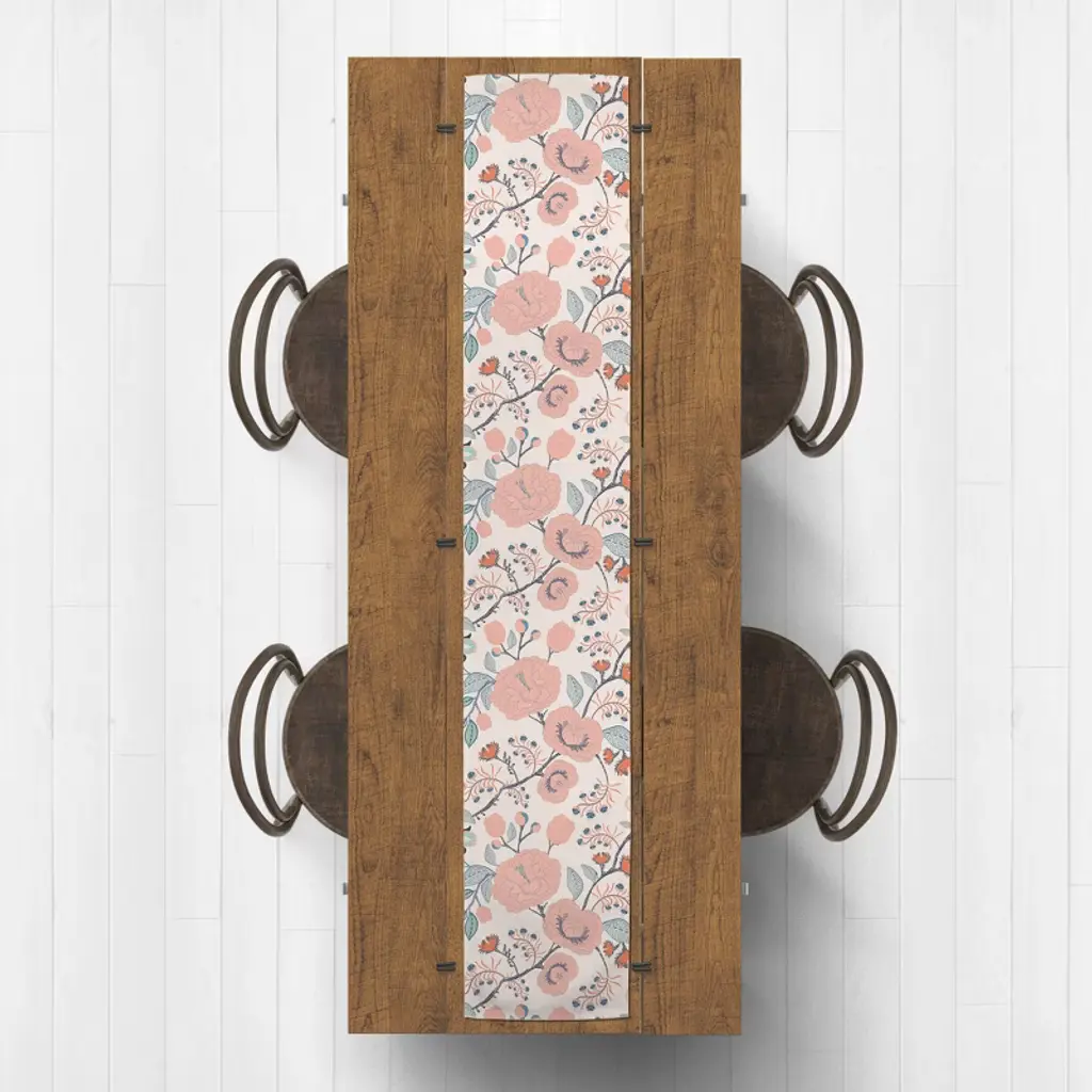 Creative Products Pink Navy Floral 16 X 72 Cotton Twill Table Runner
