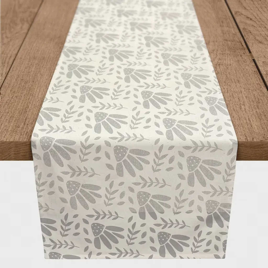 Creative Products Simple Gray Florals 16x72 Cotton Twill Table Runner