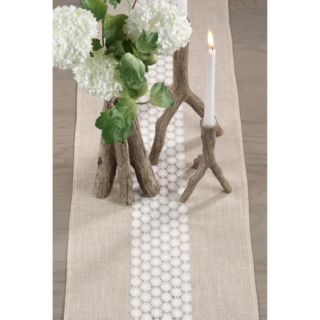 Daisy Lace Design Country Linen Blend Table Runner - 16"x72"
