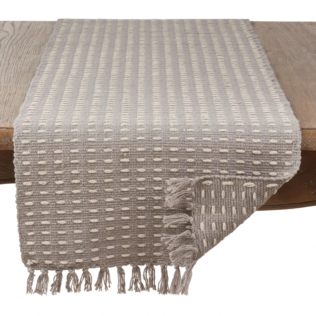 Dashed Woven Long Table Runner - 16"x90" - Grey