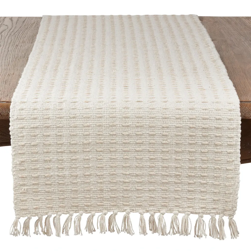 Create an authentic pastoral décor with this lovely Dashed Woven Table Runner. Crafted with 100% cotton, the long table runner gives you softness and warmth. Add fresh flowers as centerpieces and your table décor is complete.Features: