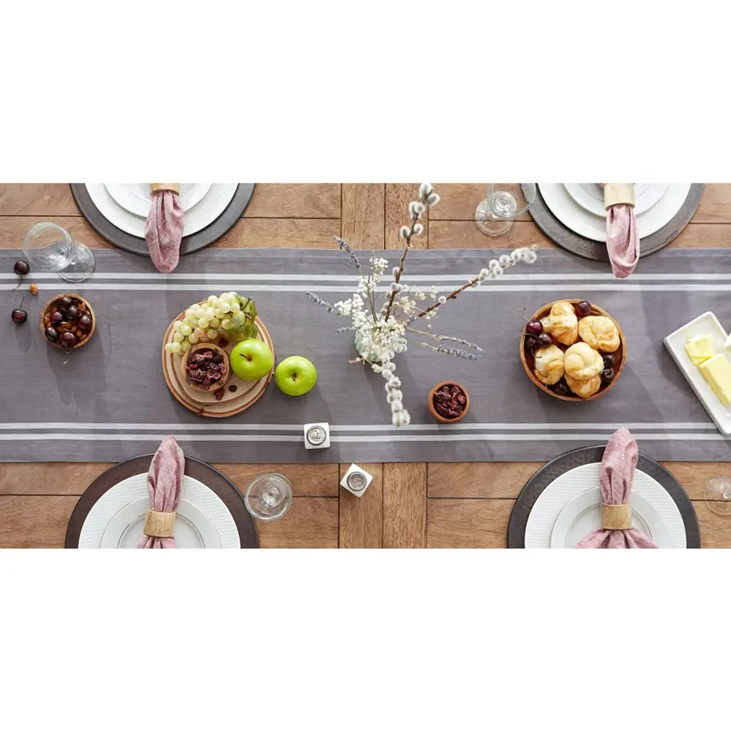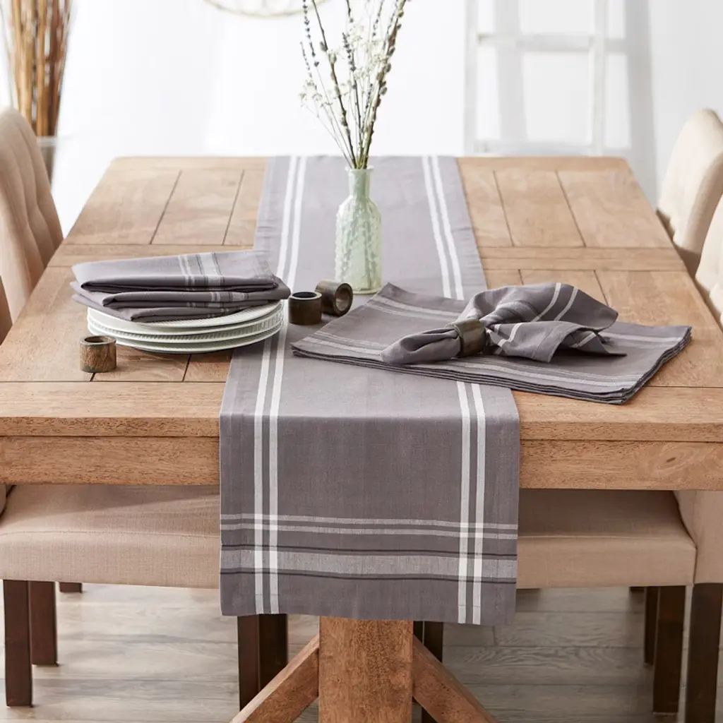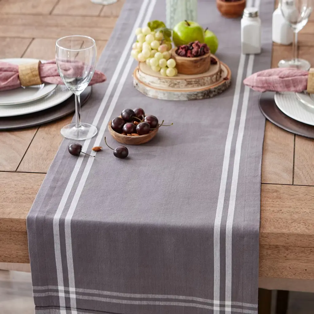 Design Imports French Stripe Table Runner, Gray Chambray, 14x72"