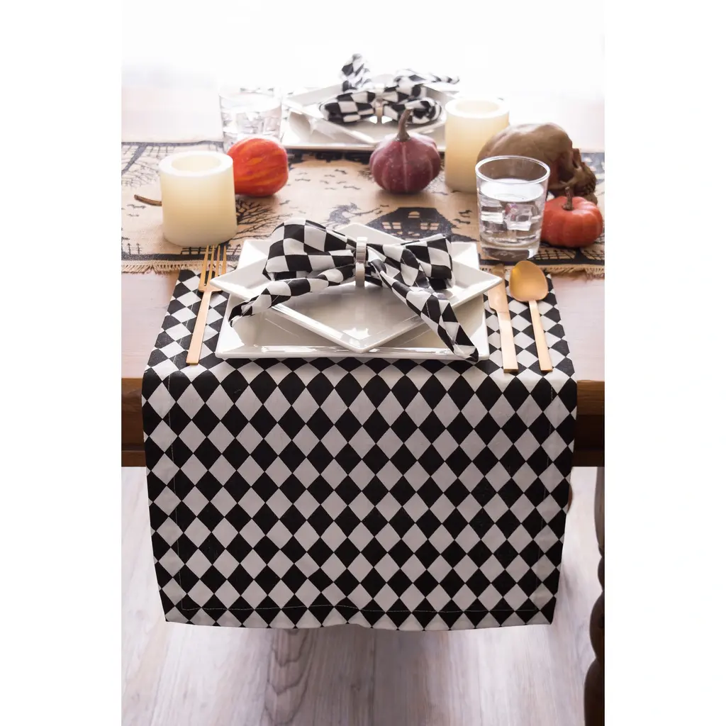 DII Halloween Black and Cream White Harlequin Table Runner makes it easy to dress up your table setting for Halloween! DII 100% cotton table runner is an elegant way to transform your table for Halloween dinner, themed parties or horror movies night! Care instructions: Machine wash cold separately, Gentle cycle, Tumble dry low and Low iron if needed. Coordinate with matching DII Halloween tablecloth and napkins to create the perfect place setting. Great for entry way tables, low book shelves, dining tables, or other surfaces of your home as well!