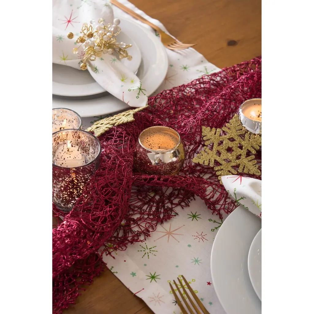 Supplement your formal decor with this table runner roll from Design Imports. Available in festive red, goldtone, or silvertone versions, this sequin mesh runner adds dazzling elegance to weddings and holiday parties. The runner is made from 100-percent polyester for a soft, sturdy weave.