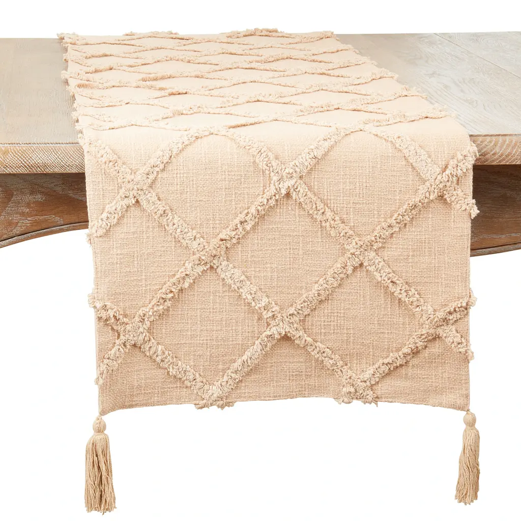 Highly versatile and easy to pair, the Diamond Tufted Table Runner can be dressed up for special occasions or pared down for casual dining. The diamond pattern brings texture and dimension to any type of setting, making the runner an excellent addition to your arsenal. Made with 100% cotton, the table runner delivers great softness and durability.Features: