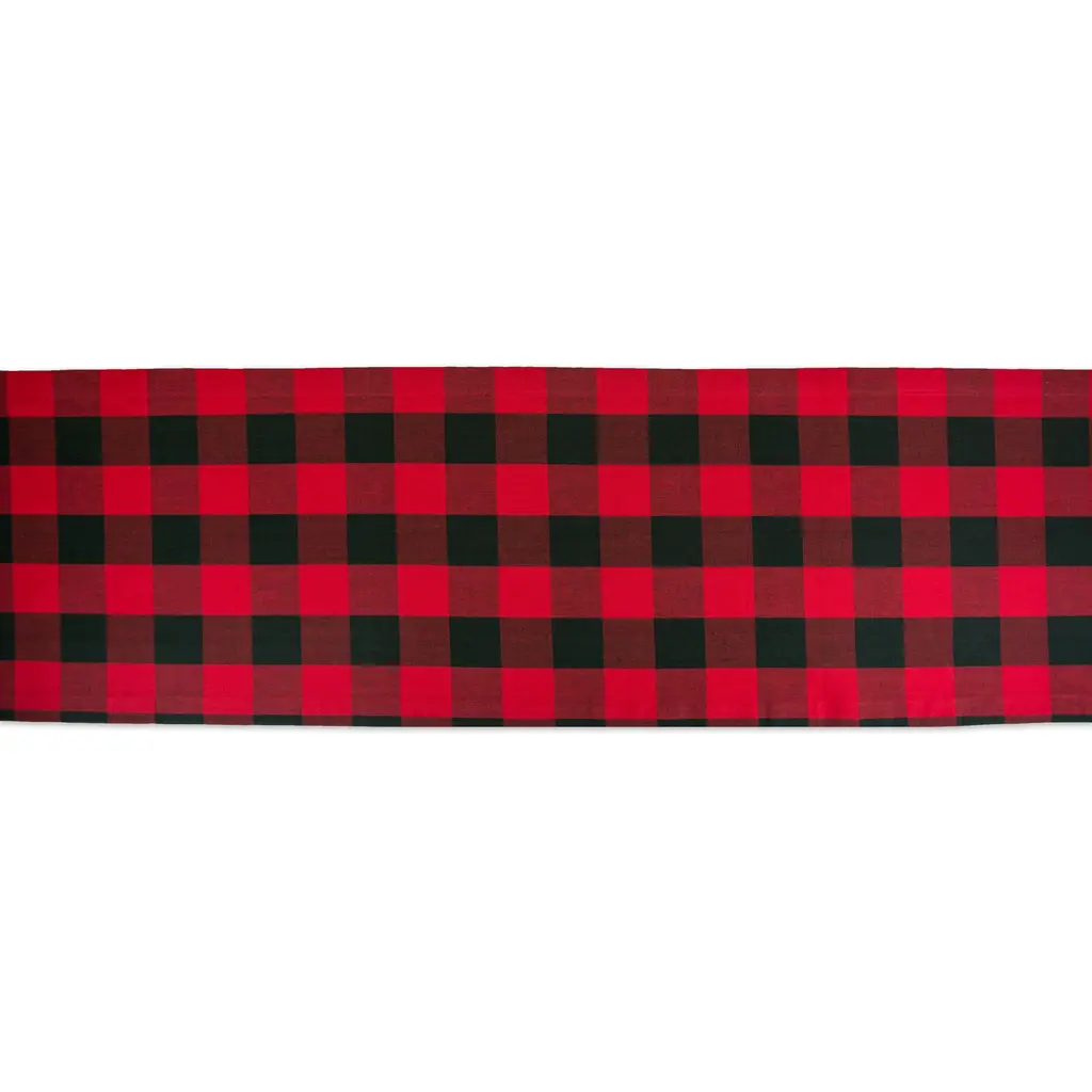Set a country table with this buffalo check table runner. Conveniently offered in your choice of colors and sizes, this cotton table runner includes a 1-inch folded hem and mitered corners that give it a tailored look. The machine-washable design makes this runner easy to clean.
