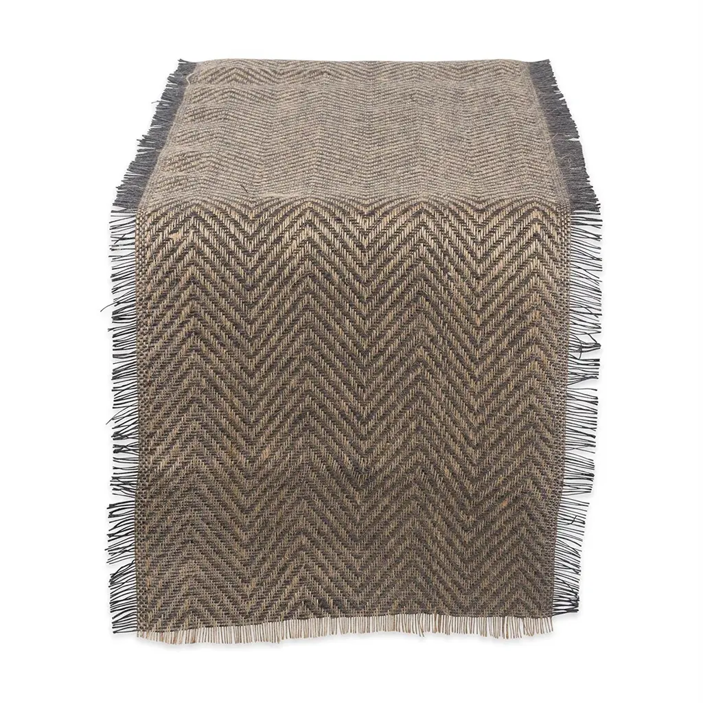 Dii Chevron Burlap Table Runner - 14x72" - Gray