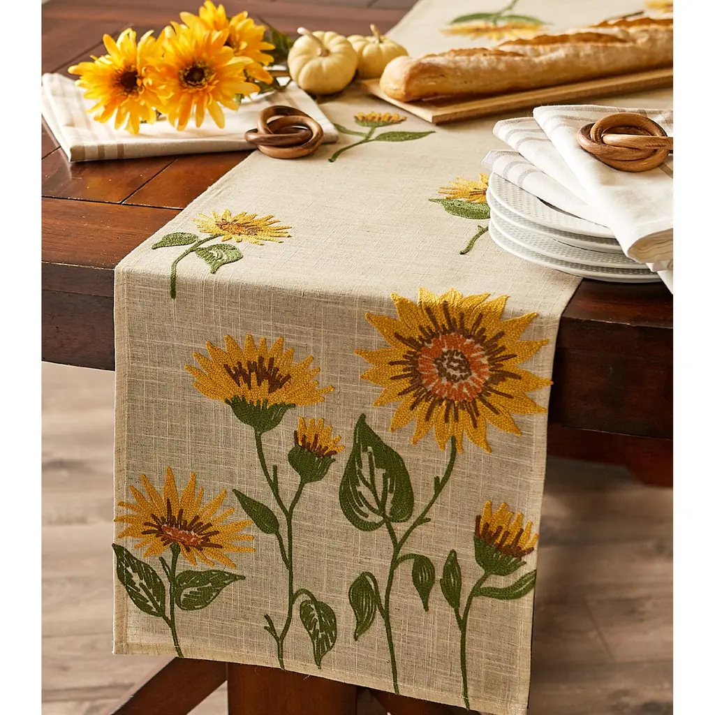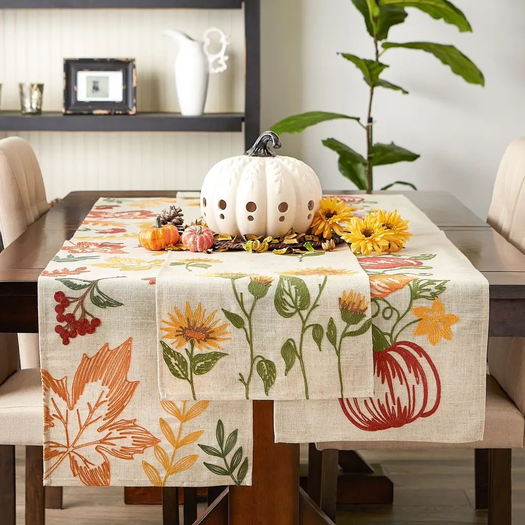 Dii Embroidered Table Runner 14x70 - Table Runner, 14x70" - Scattered Leaves