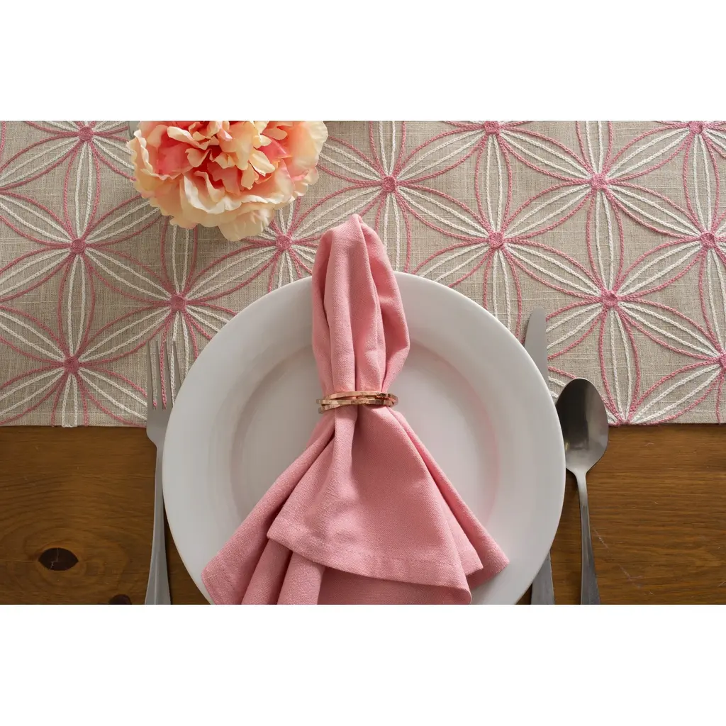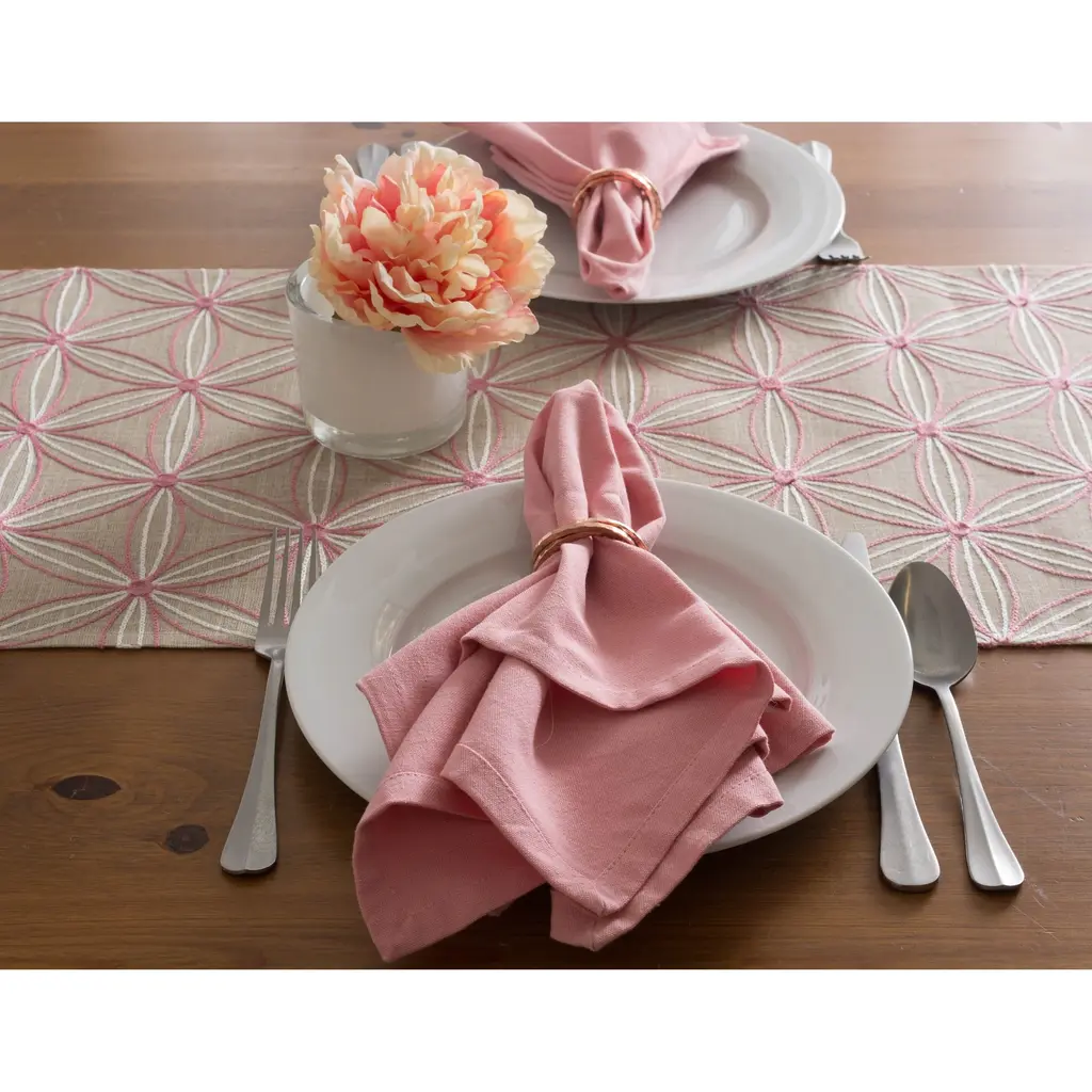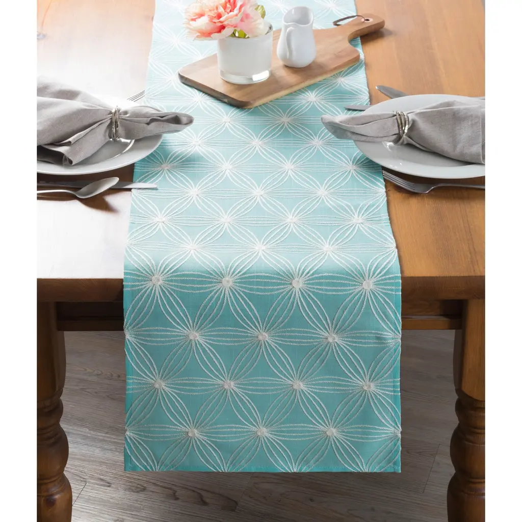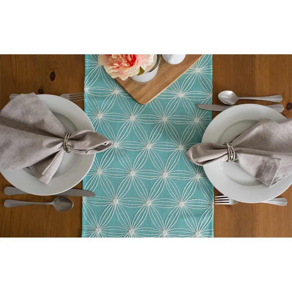 DII has a wonderful selection of table runners available. Our 100% polyester table runner with a beautiful embroidered design will add flair to your summer parties or family gatherings. The 14x70" size is long enough for most surfaces. Work great as an overlay for a solid color tablecloth or on its own. They'll look just as great on long rectangular dining tables as a smaller bistro table or coffee table. DII offers delightful home products including napkin rings, placemats and home decor. search "DII for the Home" to explore our collections or search "DII Tabletop".