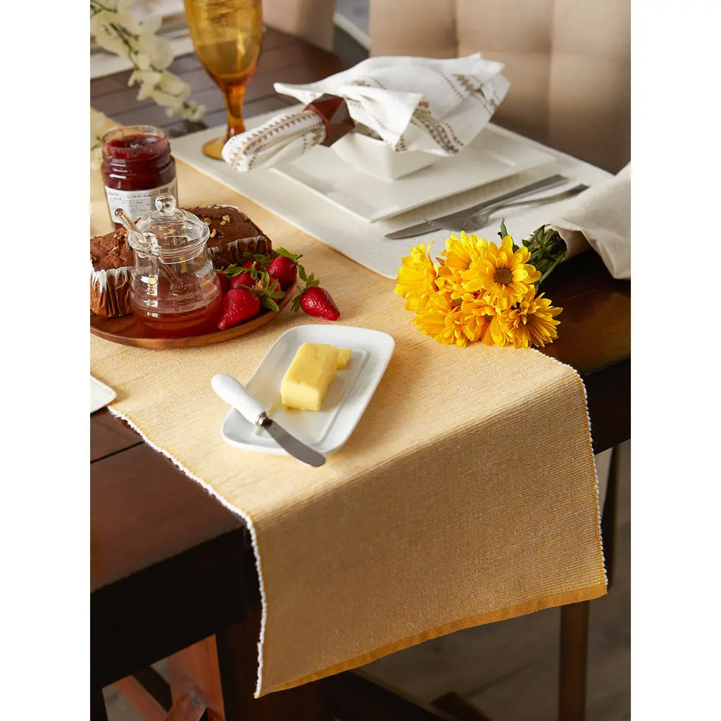 Dii Mineral Eco-Friendly Chambray Fine Ribbed Table Runner 13x72 Inches - French Blue