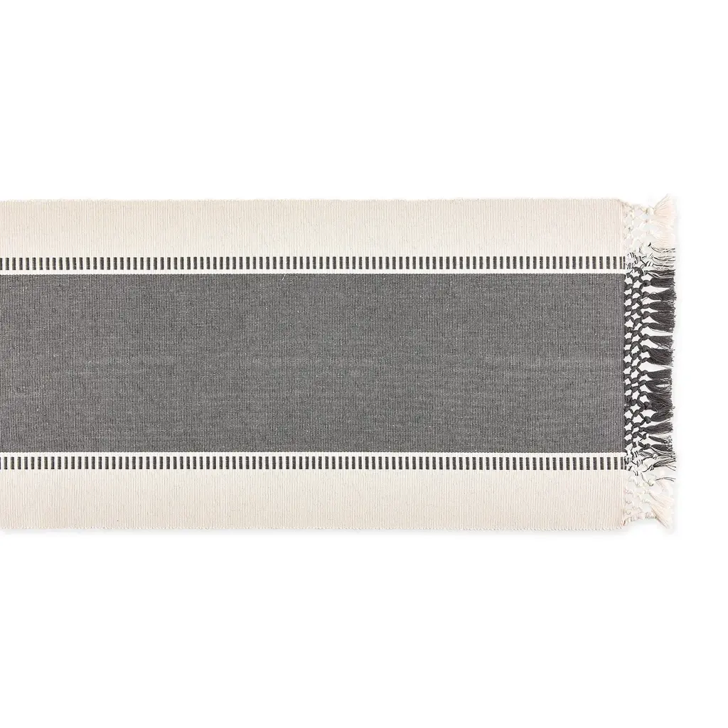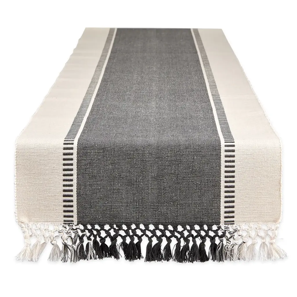 Dobby Stripe Ribbed Table Runner With Tassels - 72" - Black And Cream - White