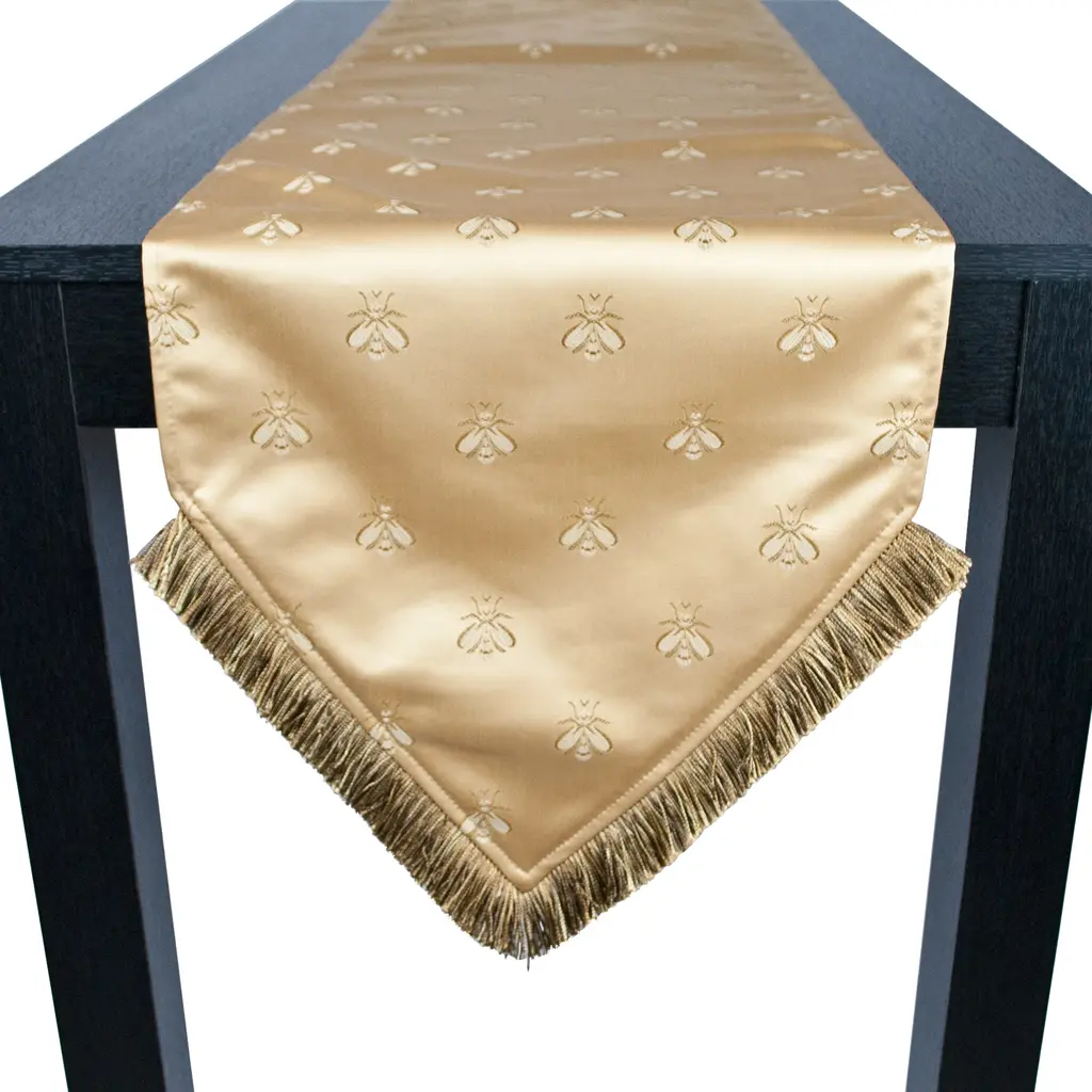 Earthy Mustard Handmade Indian Design Table Runner For Wedding Receptions, Party Decorations, And Decor For Every Occasion | Silk Sari Fabric | Ideal Ethnic Tablerunner With Golden Borders.