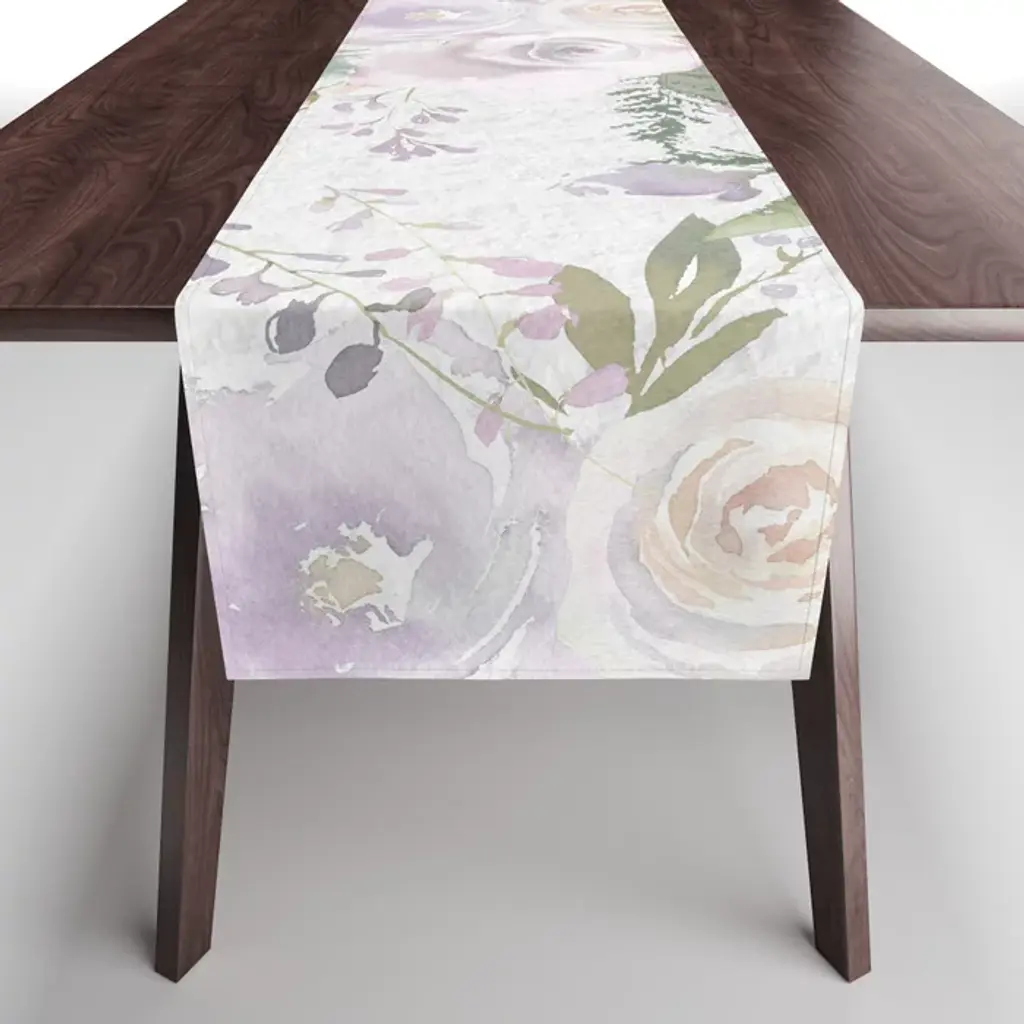 Elegant Blush Pink Lavender Green Watercolor Floral Table Runner