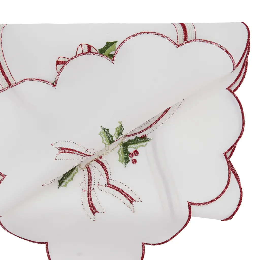 Celebrate the holiday season with loved ones and turn your table into a joyful setting with this beautiful embroidered table runner. Featuring traditional Christmas colors and themes, this runner is the perfect foundation to build a gorgeous table with. Pair with clean or vintage style silverware and glassware to complete the look.