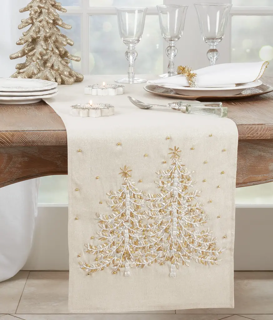 Embroidered Christmas Tree Table Runner