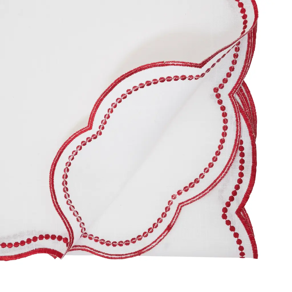 Add a touch of playful elegance to your table setting with the Embroidered Polka Dot Table Runner featuring a charming scallop edge. Crafted with meticulous attention to detail, this Table Runner boasts delicate polka dot embroidery that dances across its surface, infusing your dining space with whimsical charm. The scalloped edge adds a graceful finish, elevating its visual appeal and lending a touch of sophistication to any occasion. Whether adorning your everyday meals or special gatherings, this versatile Table Runner effortlessly complements a variety of decor styles. Bring joy and style to your table with this delightful addition to your home decor.