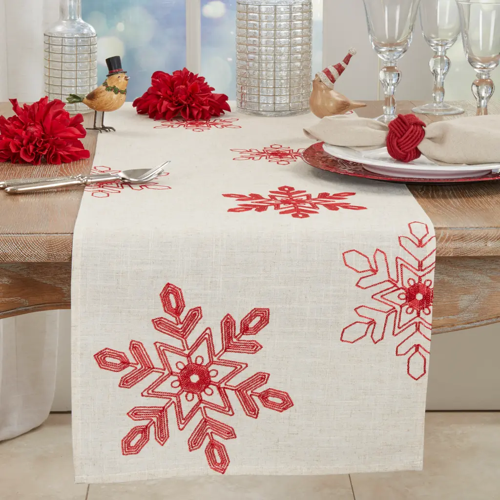 Embroidered Snowflakes Table Runner - Red / 16"x70"