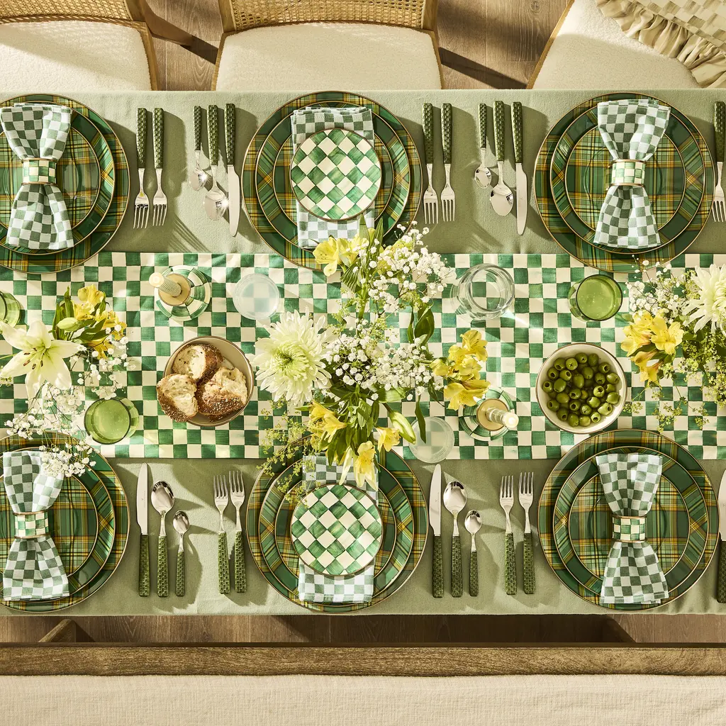 A lovingly prepared meal? Check. The very best company? Check. Perfect table runner? Emerald Check! Dress your sideboard in this cotton blend rich with verdant hues of our emerald-hued collection. Finished with complementary Emerald stripes and piping.