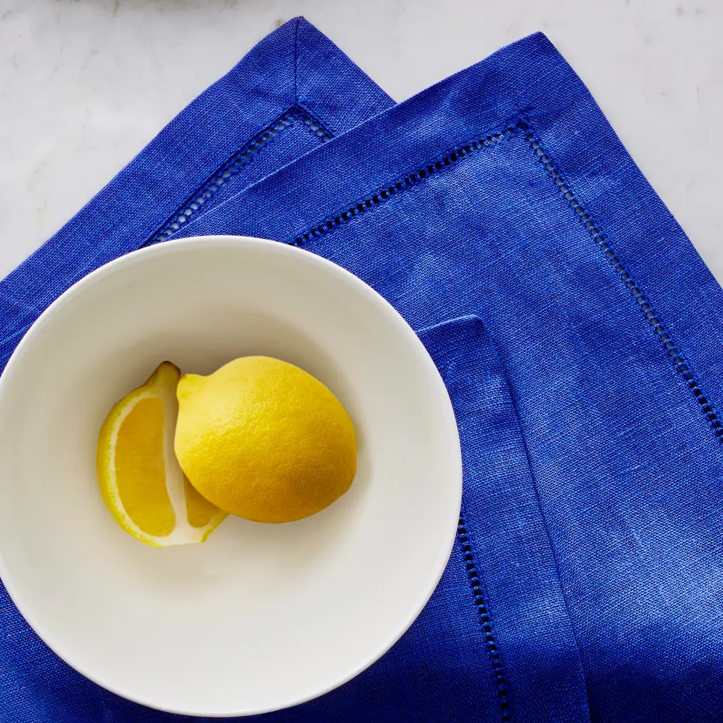 Beautiful linens in bold solid colors, with a row of hemstitching detail for an elegant dining table.