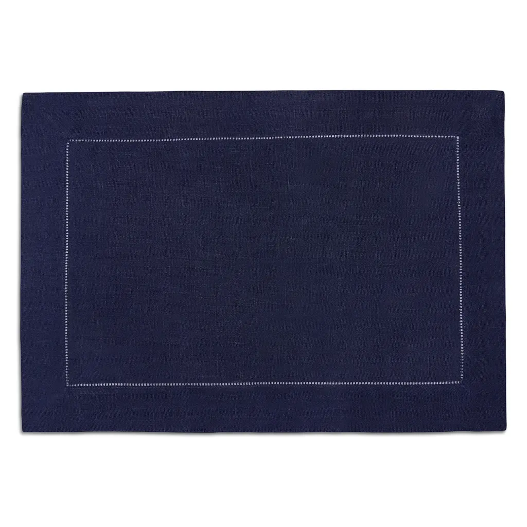 Beautiful linens in bold solid colors, with a row of hemstitching detail for an elegant dining table.