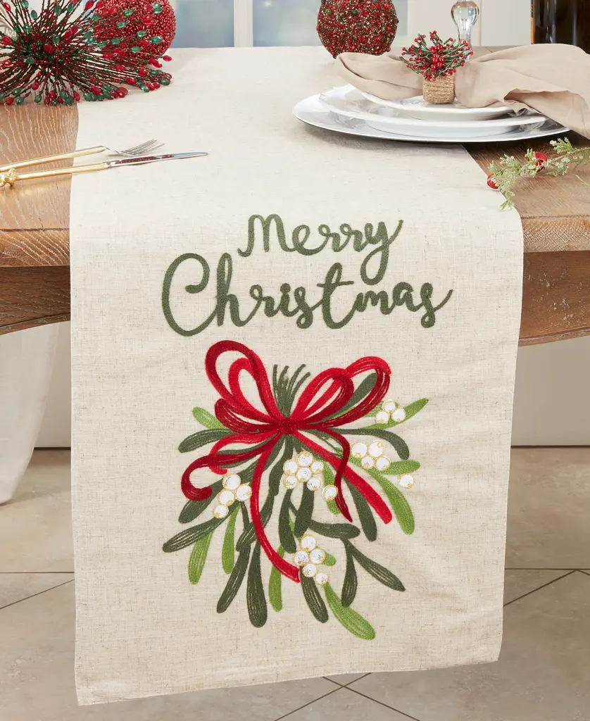 Celebrate the joy of the season with this Merry Christmas Ribbon Table Runner. Adorned with festive "Merry Christmas" ribbon, it adds a touch of holiday cheer to your table. Crafted with care, this runner creates a warm and inviting atmosphere, perfect for Christmas gatherings and creating lasting memories with loved ones.