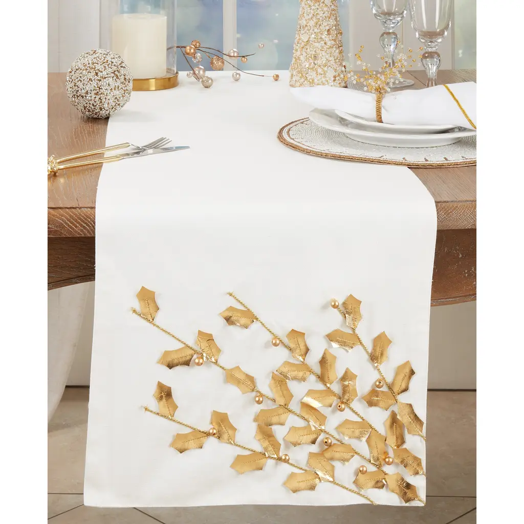 Festive Poinsettia Branch Table Runner - 16"x72" - Gold