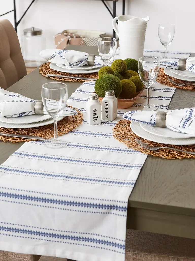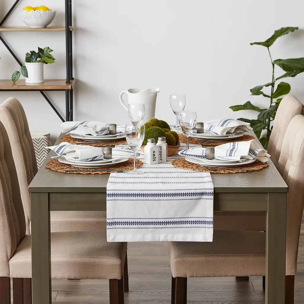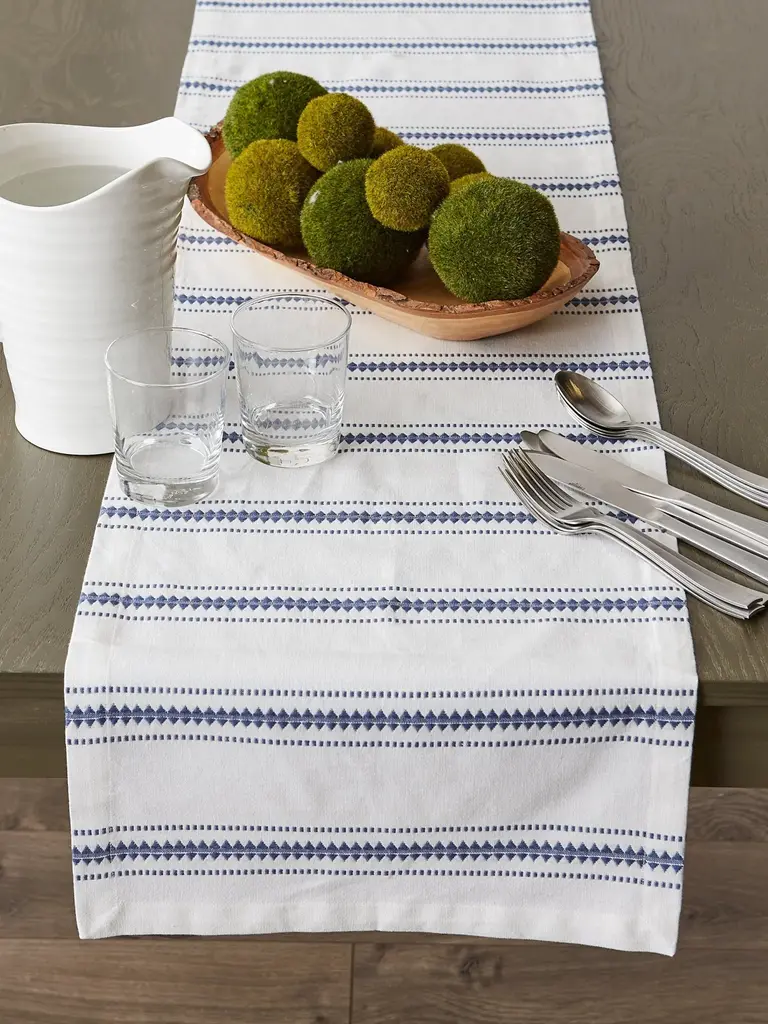 French Blue Zig Dobby Stripe Table Runner 14x108