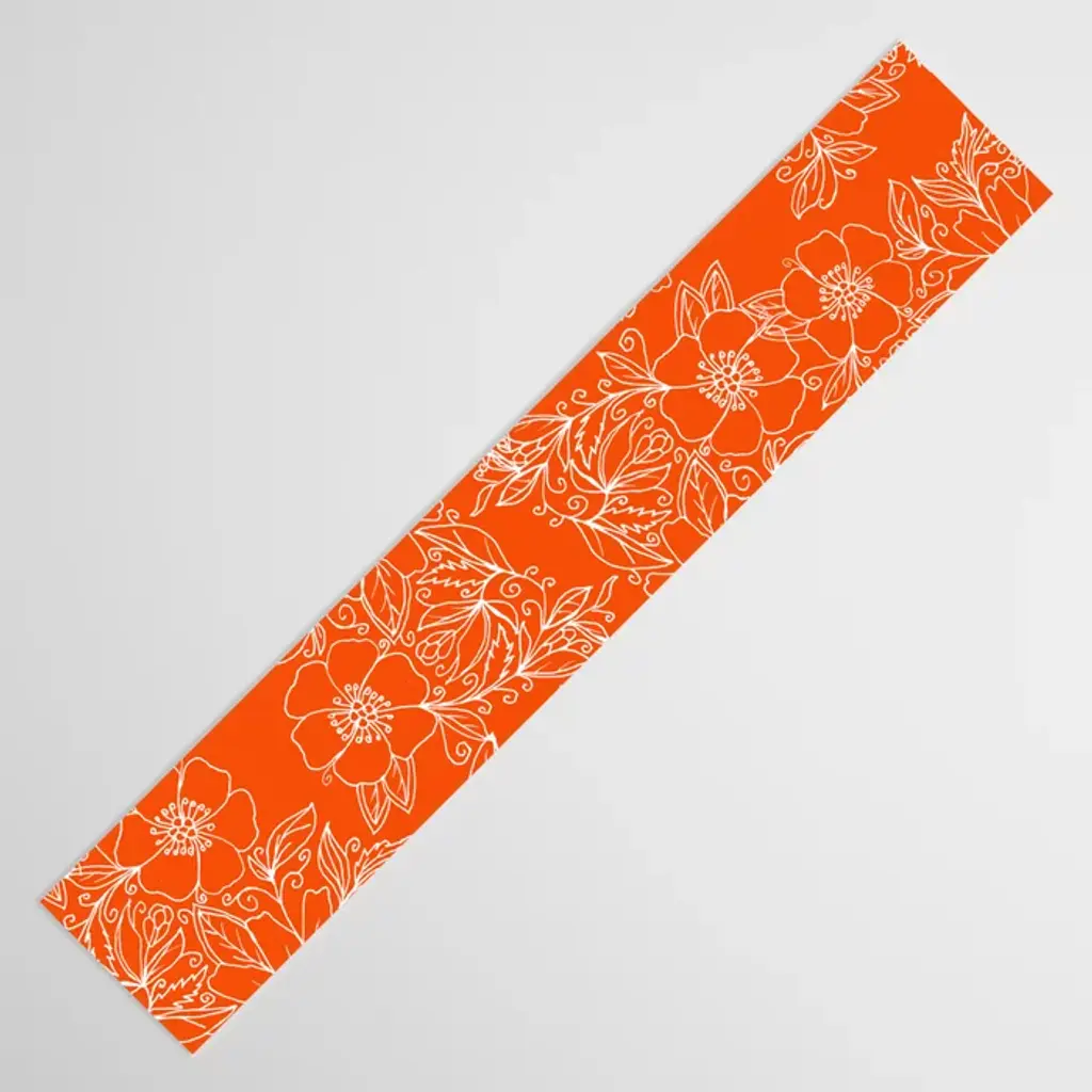 Hand Drawn White Bright Orange Modern Floral Table Runner