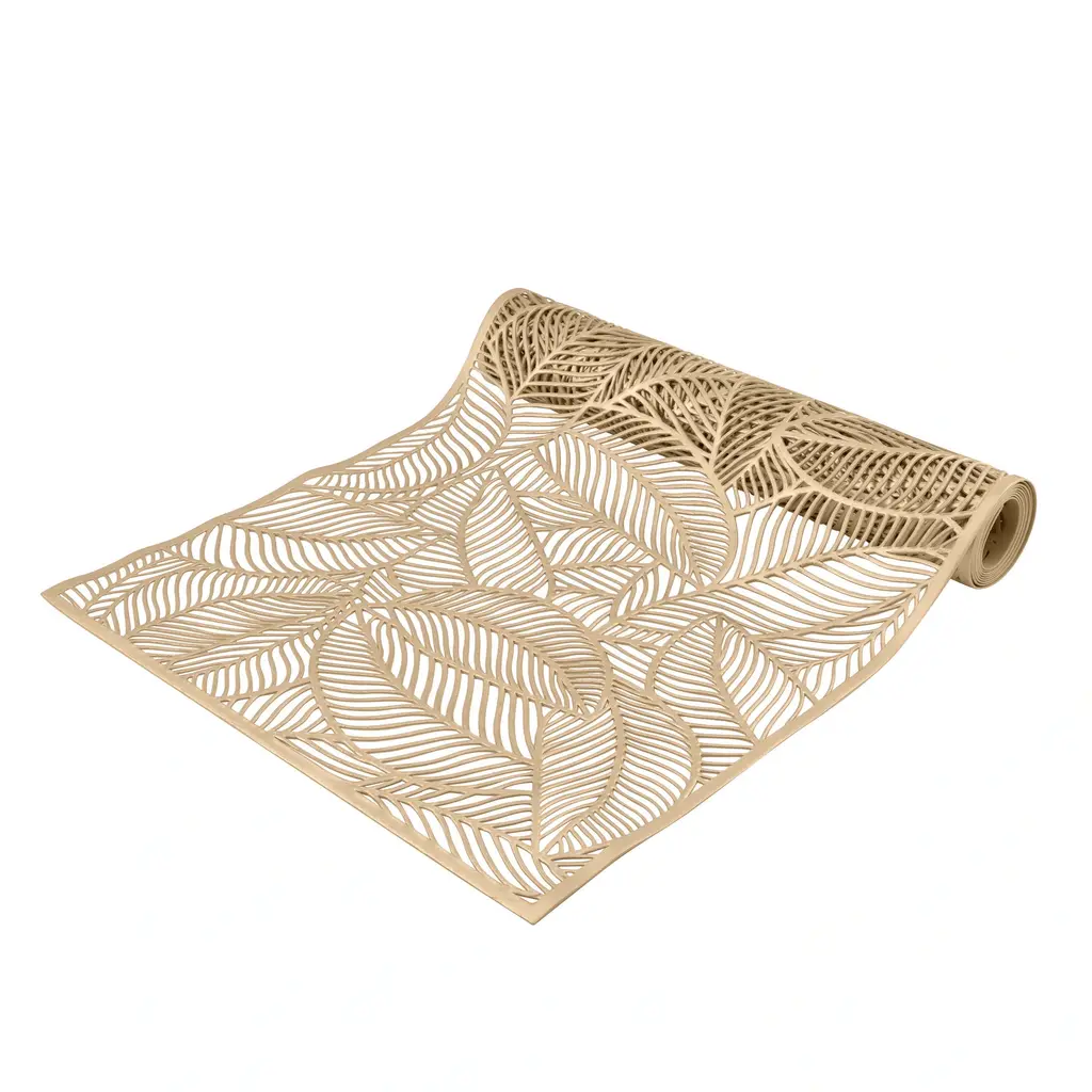 Add the finishing touch to your dining room table with the Home Details Leaf Laser Cut Table Runner. The unique and glamorous design will add the right tough to elevate your table setting. This table runner is perfect for you holiday and dinner parties. Create a picture-perfect table setting to impress your guests. The table runner goes down the middle of your table to enhance your centerpieces and table decor. The durable PVC material is long lasting and when done using, they are easy to clean by wiping them down with a cloth. No kitchen table setting is complete without the Home Details Table Runner.