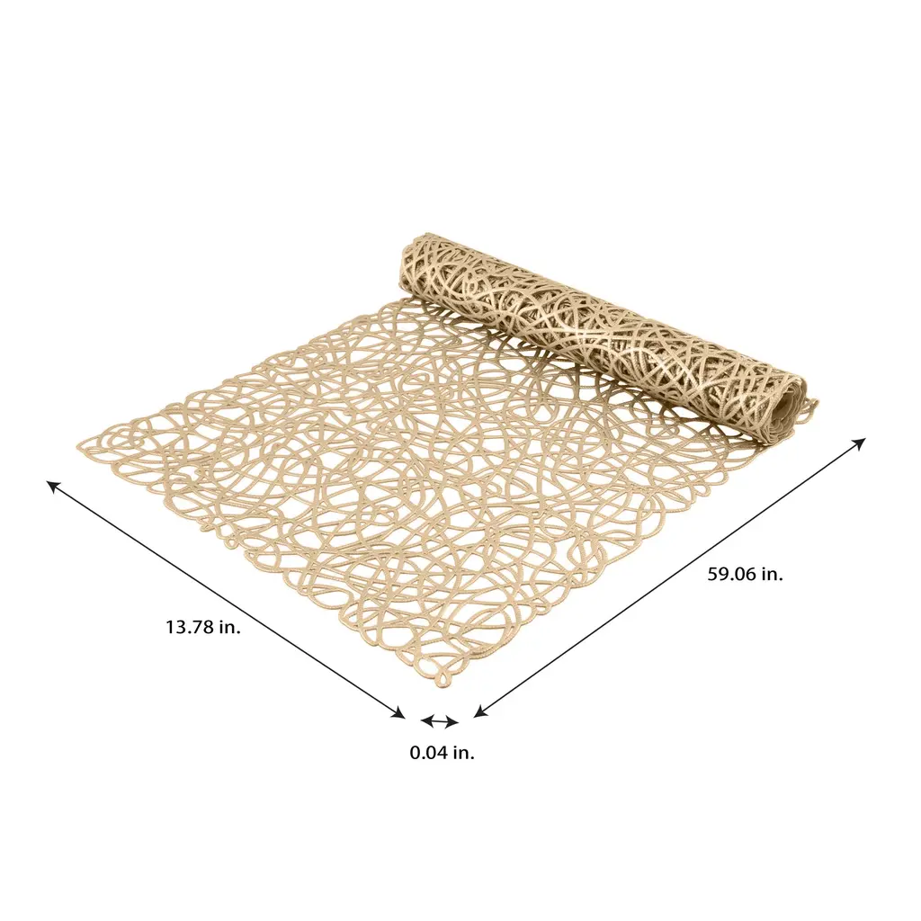 Add the finishing touch to your dining room table with the Home Details Rope Laser Cut Table Runner. The unique and glamorous design will add the right tough to elevate your table setting. This table runner is perfect for you holiday and dinner parties. Create a picture-perfect table setting to impress your guests. The table runner goes down the middle of your table to enhance your centerpieces and table decor. The durable PVC material is long lasting and when done using, they are easy to clean by wiping them down with a cloth. No kitchen table setting is complete without the Home Details Table Runner.