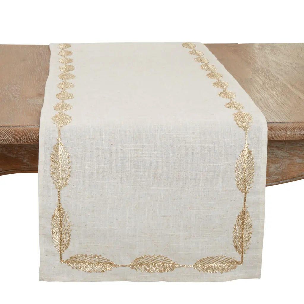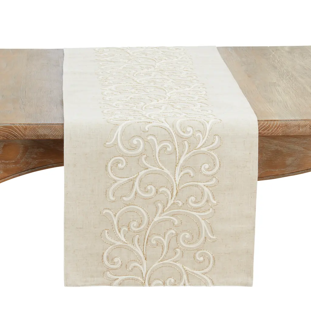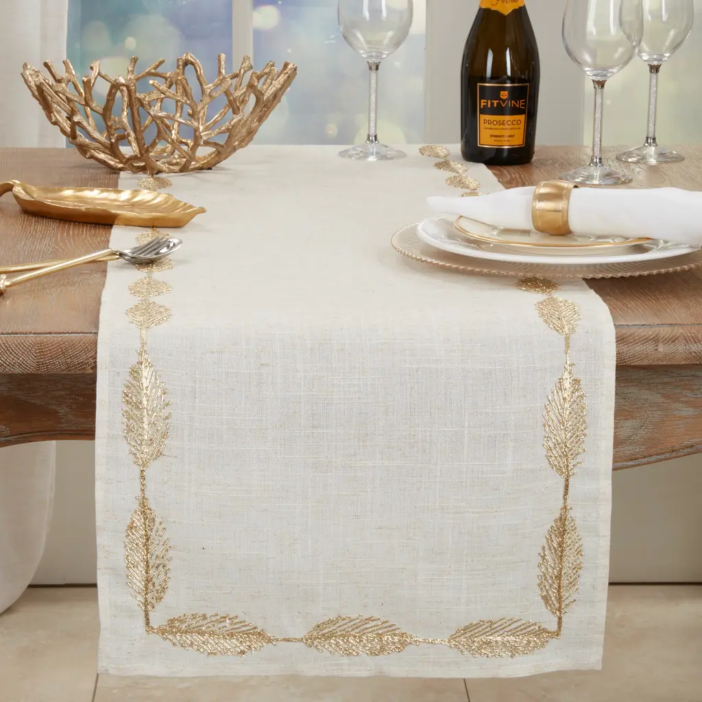 Intricate Leaf Pattern Embroidered Table Runner - 16"x72"