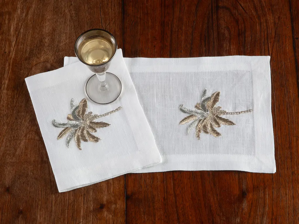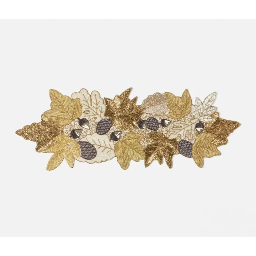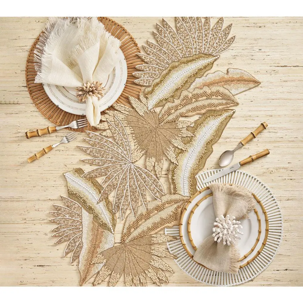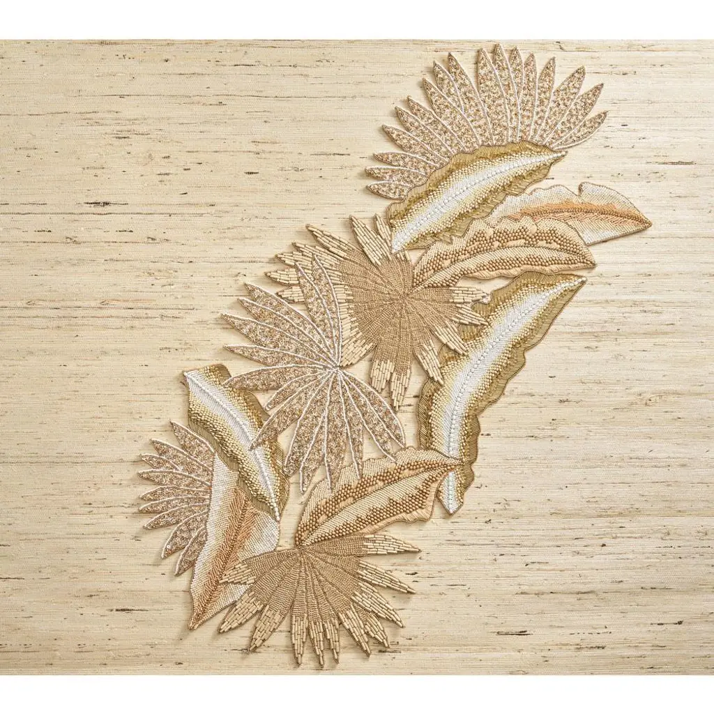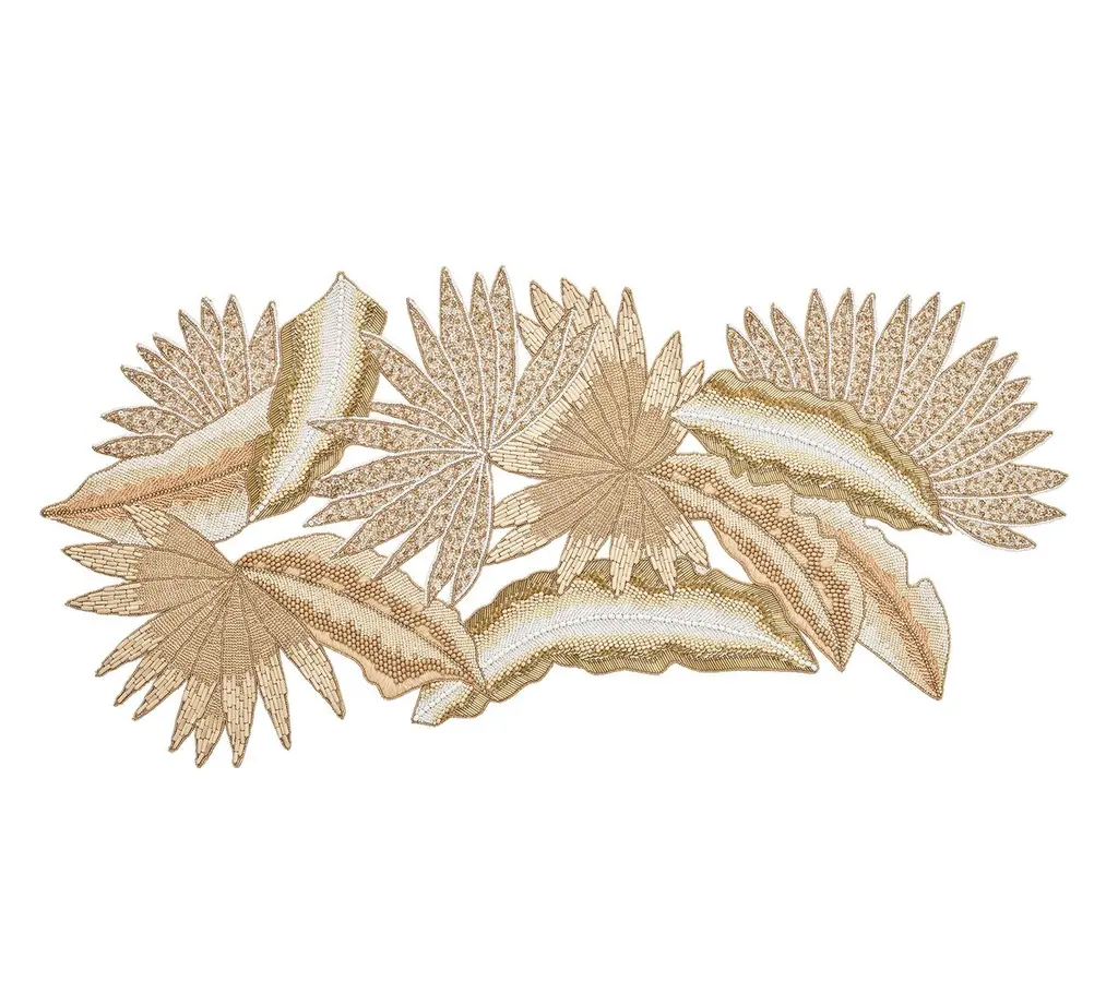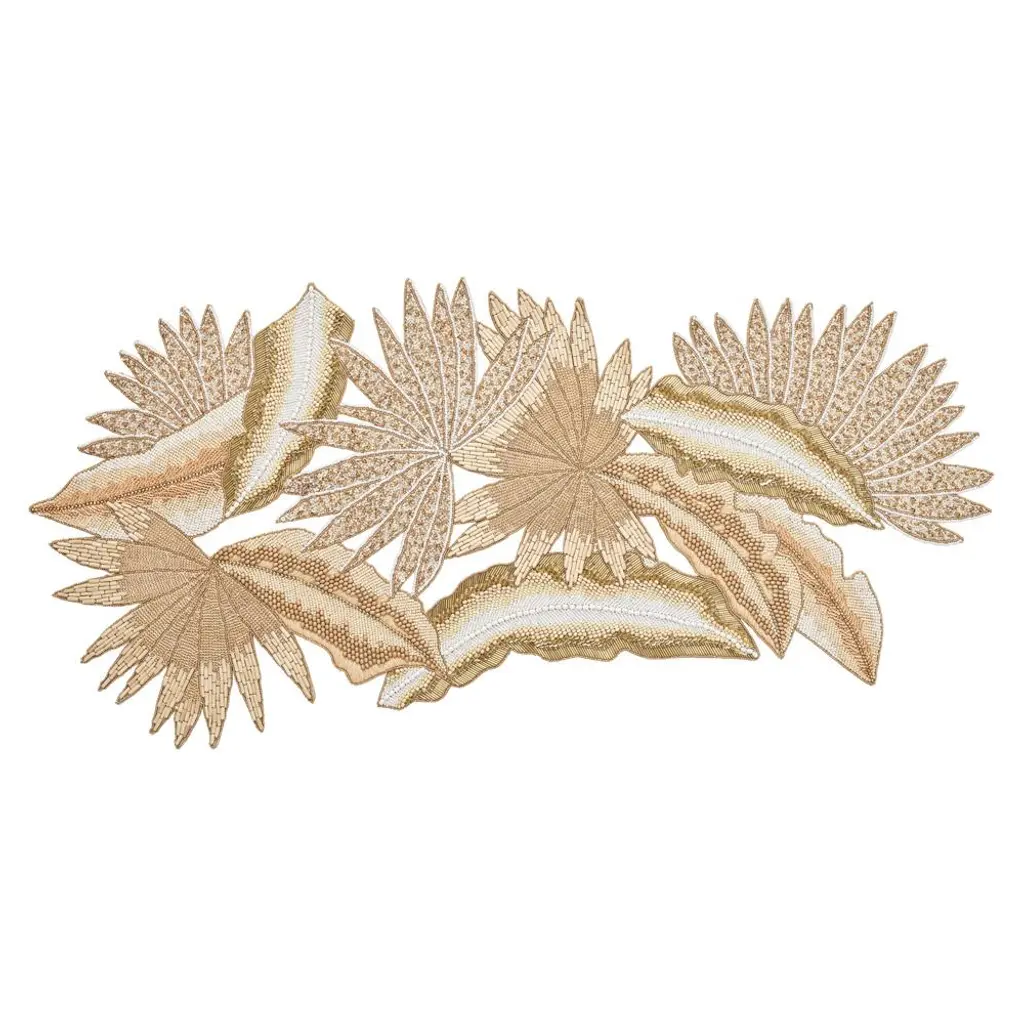 Java Coastal Gold Beaded Natural Tropical Leaves Table Runner