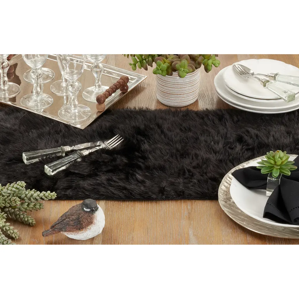 Juneau Collection Faux Fur Table Runner - 15"x36" - Black