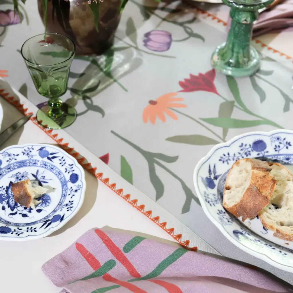 Table runner with an embroidered seam in the Picnic on the Meadow print. Made with our signature 100% Heavy Organic Cotton.Available in two sizes: Small 12 x 78" Large 16 x 136"100% Organic Heavy CottonPrinted with Low Impact DyesEthically made in India by our partners at Five P Venture