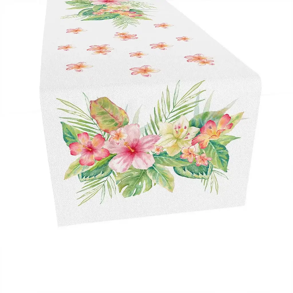 Large Table Runner In Oversize Bold Flower Print On Light Grey