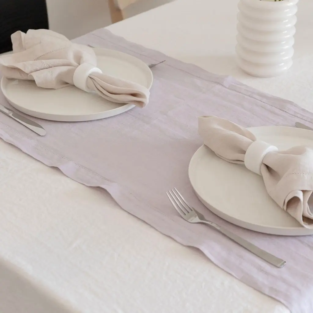 Enhance your dining experience with the Lavender Linen Table Runner. Crafted from premium European linen, this runner adds a touch of understated elegance to any table setting. Its soft lavender hue complements various decor styles, creating a cohesive and stylish look. Designed for convenience, the table runner is machine washable, ensuring easy maintenance. Measuring 40 x 200 cm, it’s the perfect addition to elevate your home decor for both casual and formal occasions.