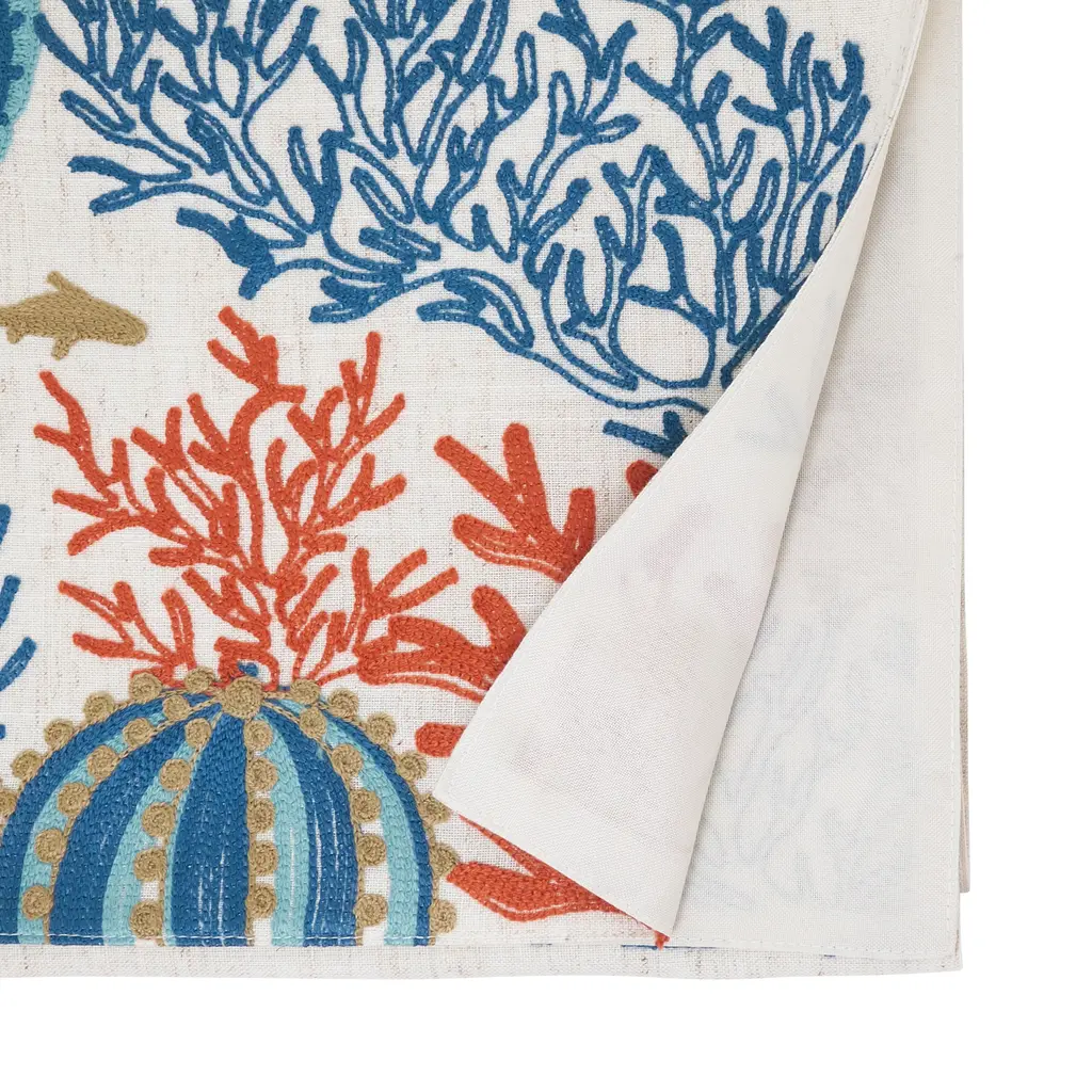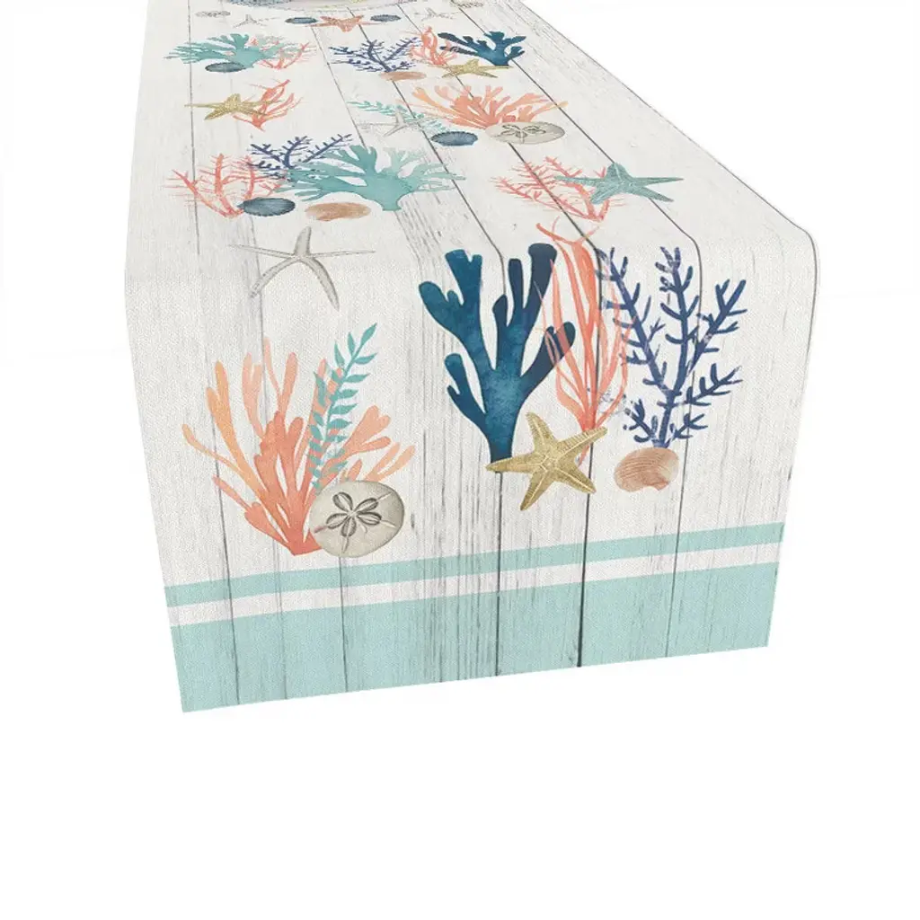 Linen Blend Sea Horse And Coral Table Runner