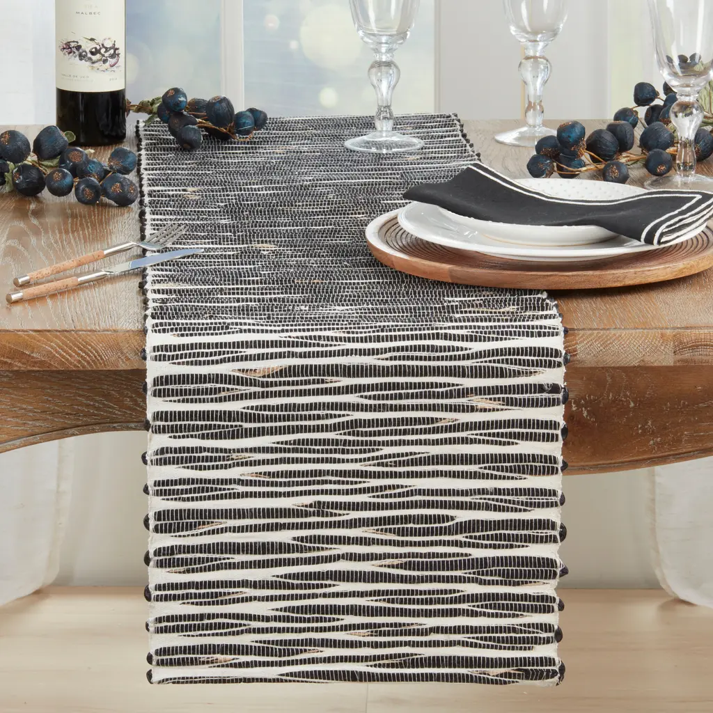 Long Table Runner With Water Hyacinth Design - 14"x72" - Black/white