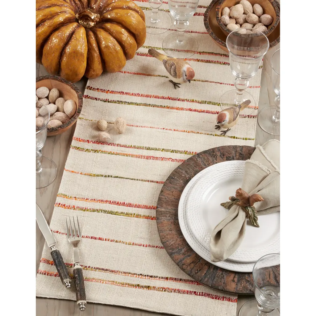 Highly versatile, this Woven Line Table Runner is perfect for any occasion. You can easily dress it up for dinner parties and casual entertaining, but also pare it down for family meals or everyday use. The natural backgrounds creates a neutral canvas for the colorful lines, which makes them pop.Features: