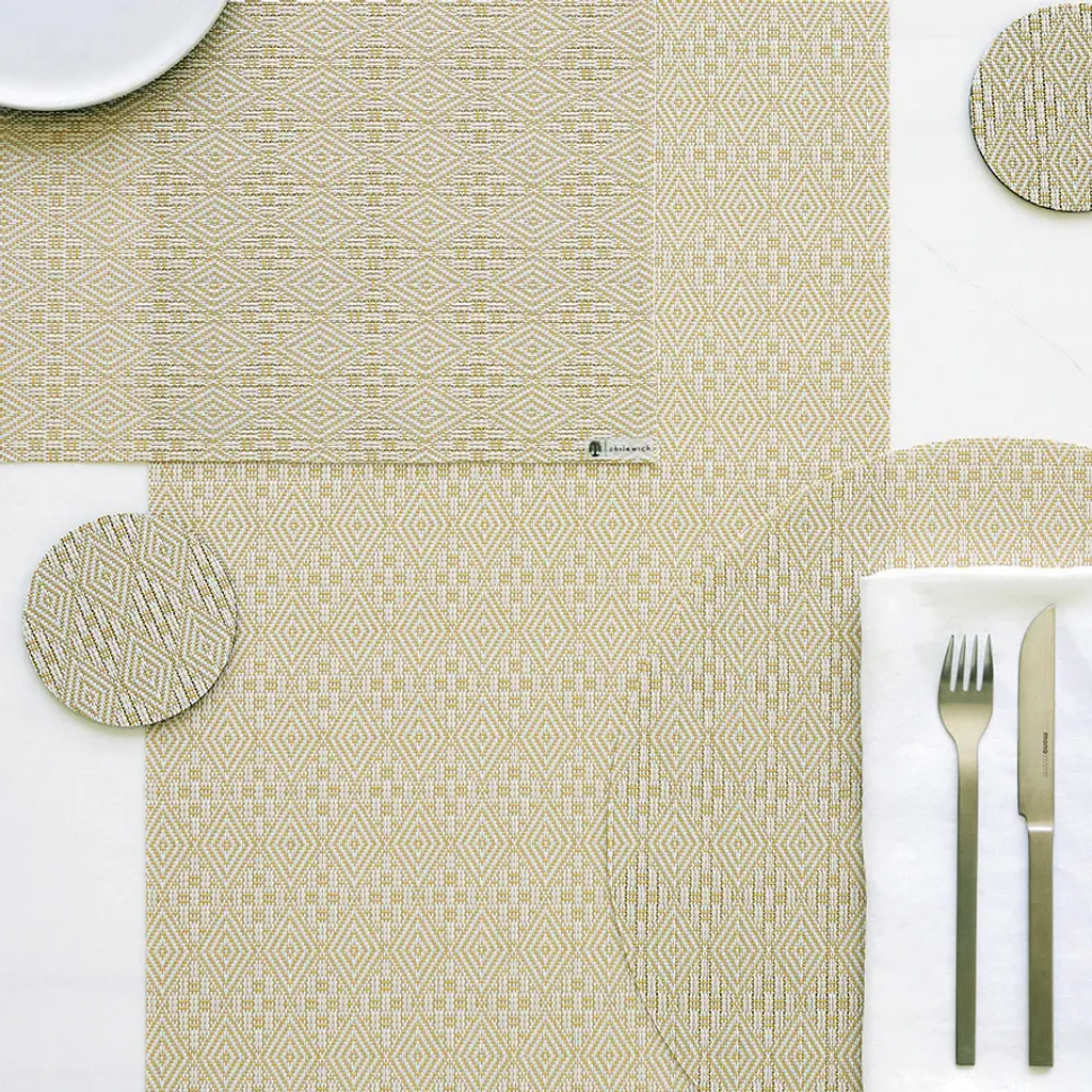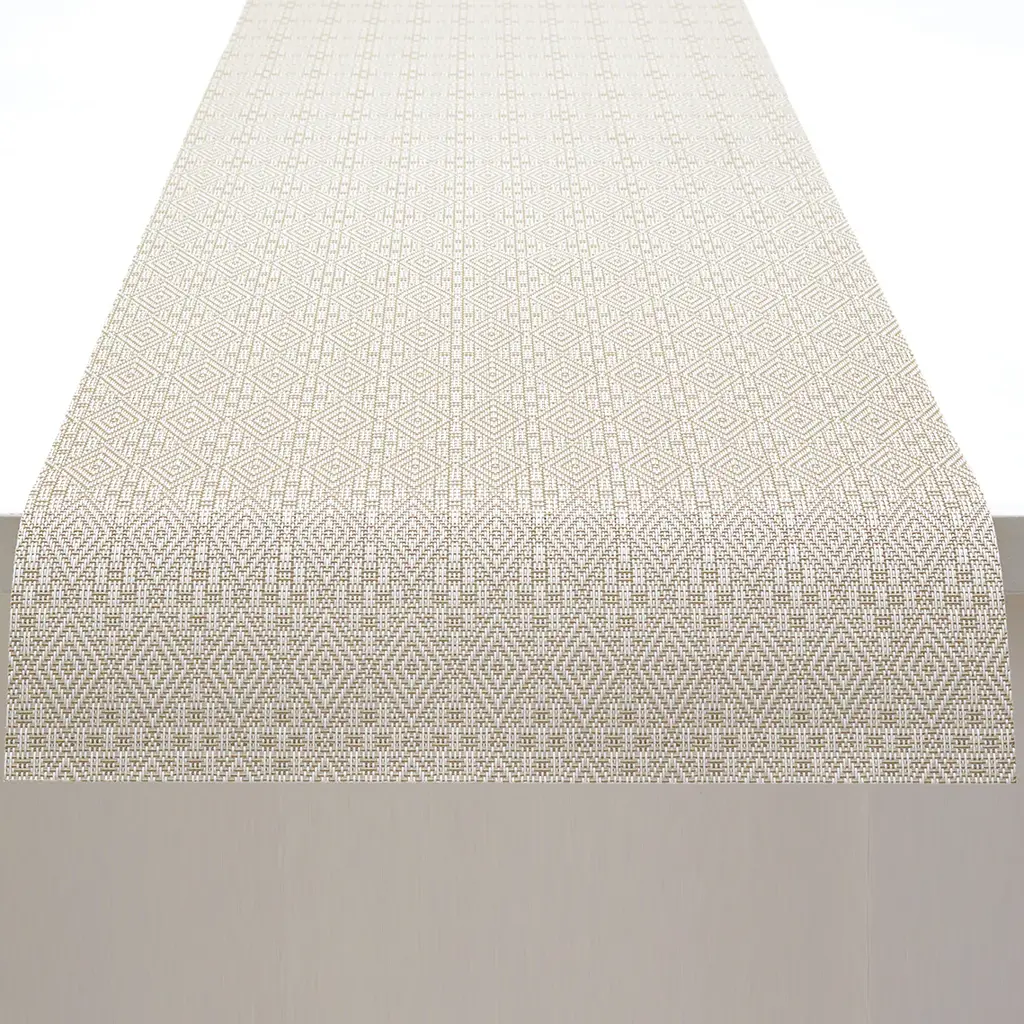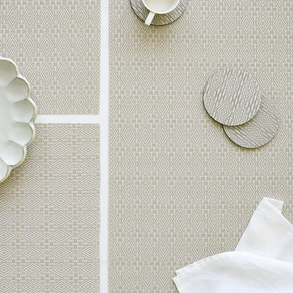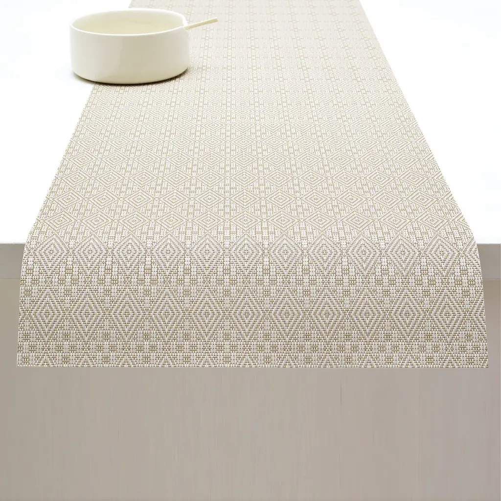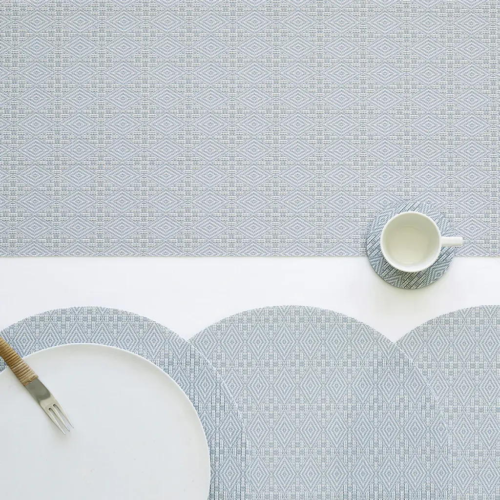 The Martha Stewart Boxwood Table Runner from Chilewich exemplifies refined textile artistry through its distinguished collaborative design. Drawing inspiration from the captivating dimensional interplay of layered textiles, this exquisite dobby weave achieves a harmonious balance between precise geometric structure and delicate openwork elements—the latter achieved through the sophisticated huck lace technique. The meticulous craftsmanship reveals a nuanced understanding of textile heritage while offering remarkable versatility; when reversed, the chromatic composition transforms completely, providing discerning hosts with two distinct expressions of elegance within a single, meticulously crafted piece. Highlights