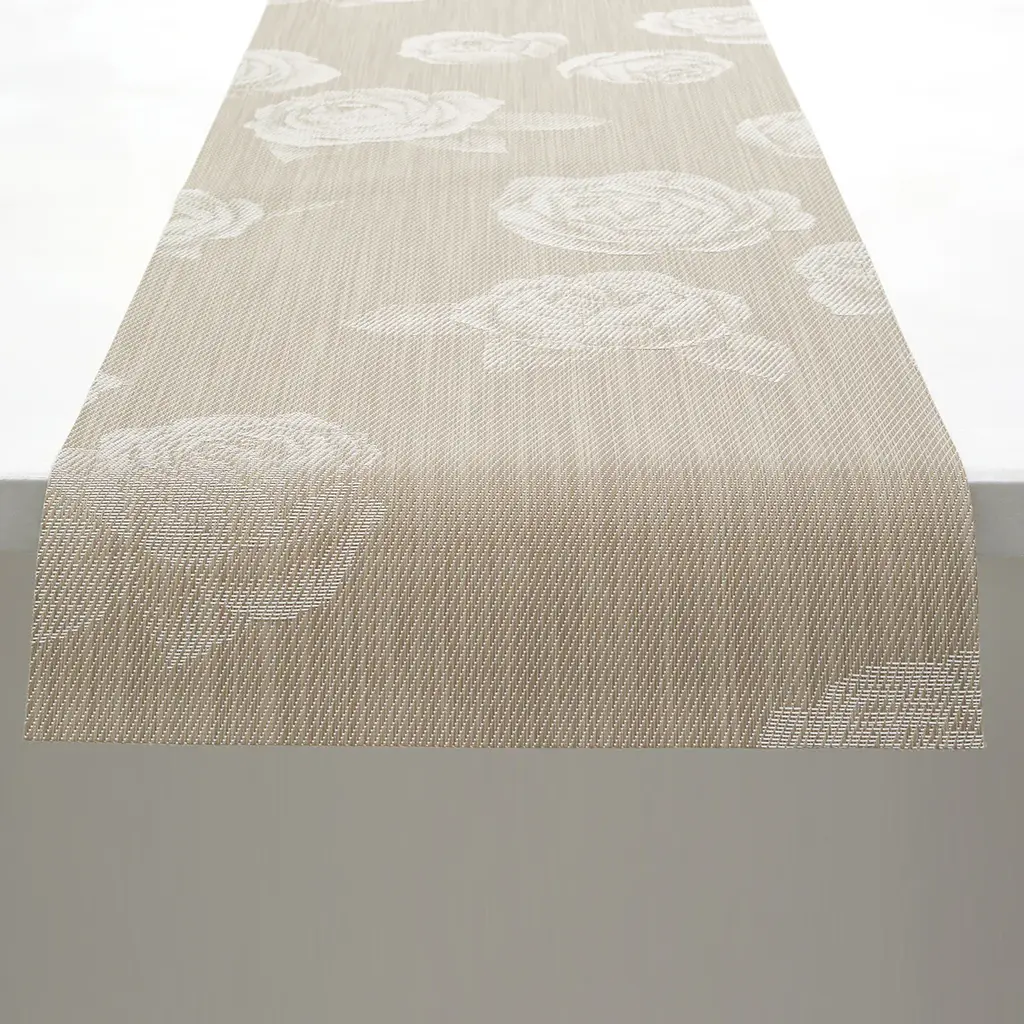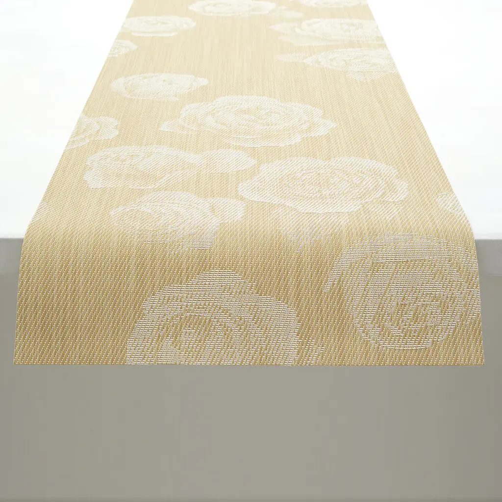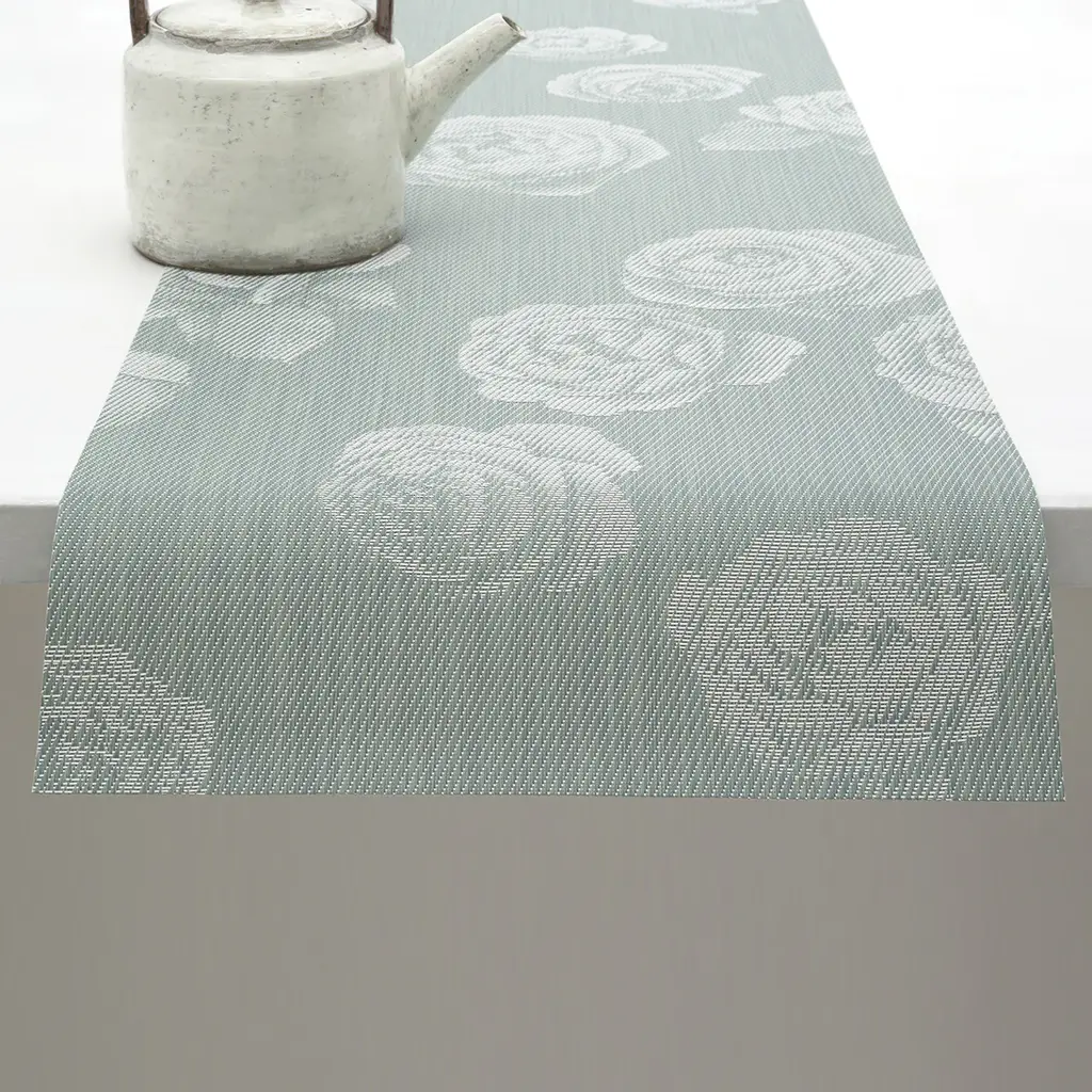 The Martha Stewart Rosette Table Runner from Chilewich exemplifies textile artistry at its most refined, born from a distinguished collaboration with Martha Stewart, whose quarter-century of horticultural expertise with roses informs this exceptional design. This sophisticated piece transcends conventional weaving limitations, meticulously recreating the sumptuous, multi-petaled character of cabbage roses through an exacting process that began with hand-rendered botanical illustrations. The design atelier's painstaking experimentation with proportion, silhouette refinement, and tonal gradation has yielded an extraordinary textile achievement. Highlights
