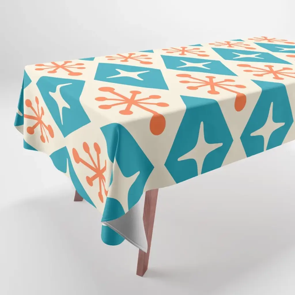 Mid Century Modern Atomic Age Googie Pattern 107 Turquoise And Orange Table Runner