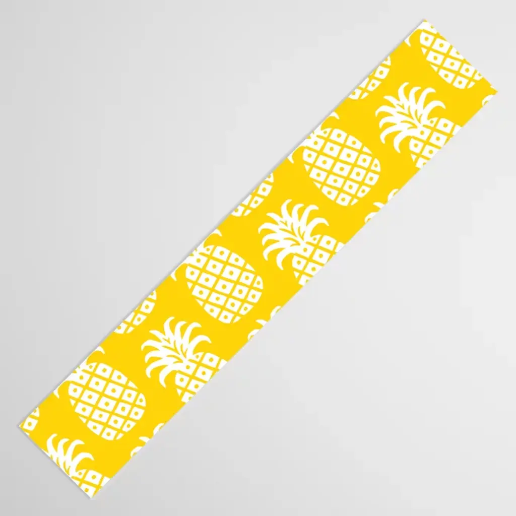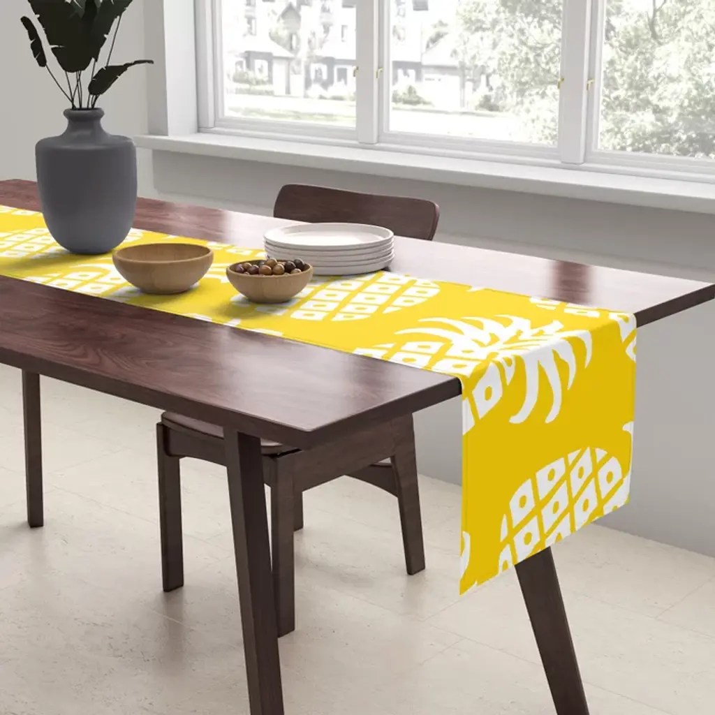 Mid Century Modern Pineapple Pattern Yellow Table Runner