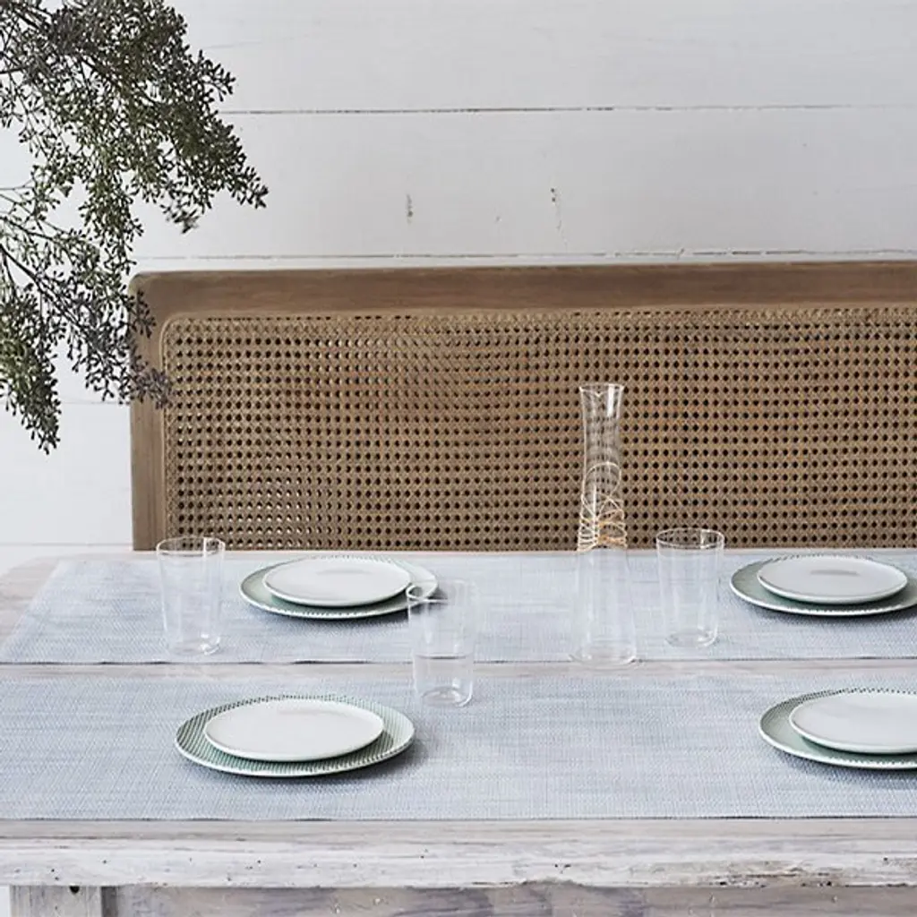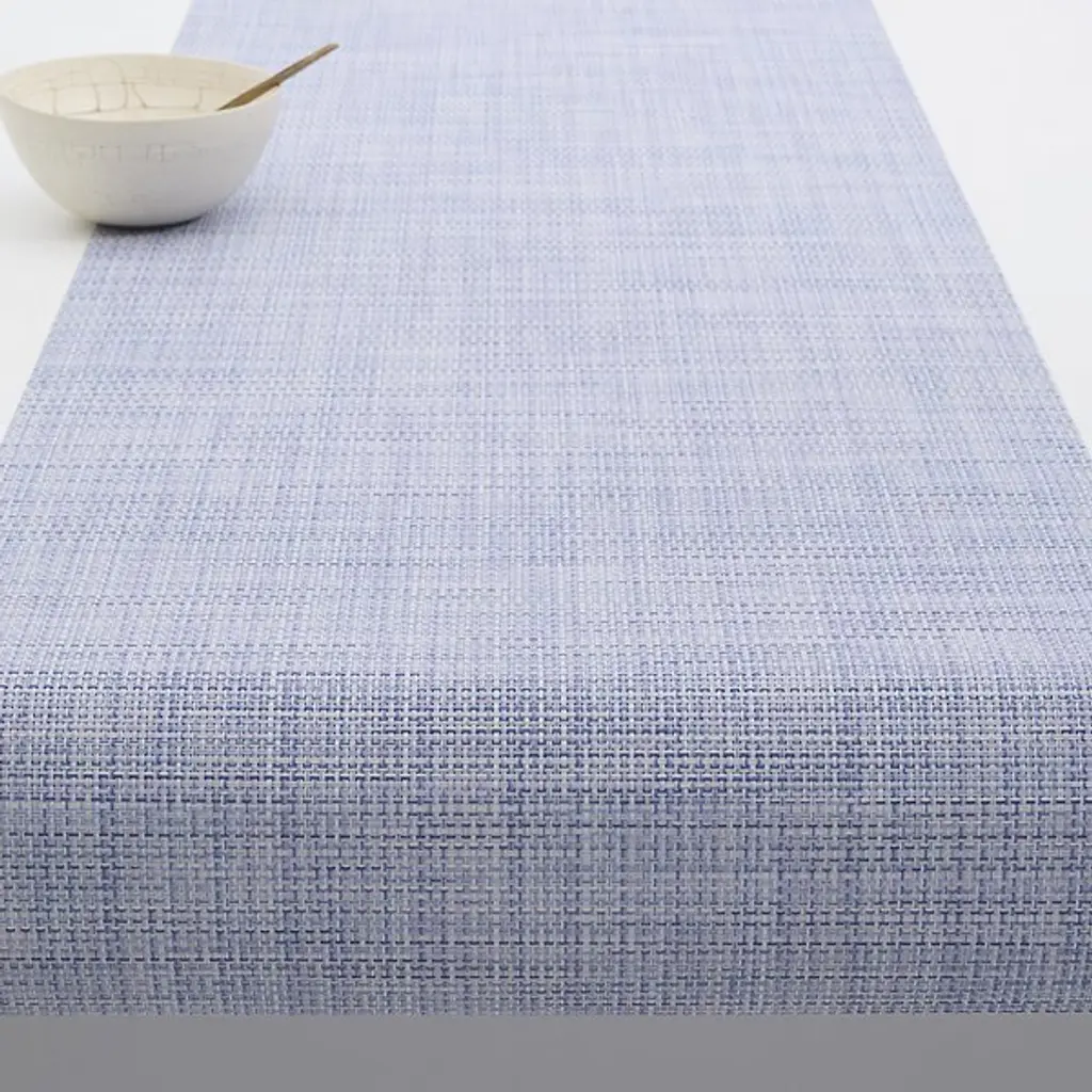 The Chilewich Mini Basketweave Table Runner is 'little sibling' to the company's signature Basketweave. Mini Basketweave features a refined, clean pattern that creates simple elegance in the kitchen or dining room. Washable and stain resistant, this mini table runner is impervious to spills and suitable to virtually any space. The Plynyl Mat edges are heat-sealed, not bound, to provide a sleek, thin profile. Made in the USA.