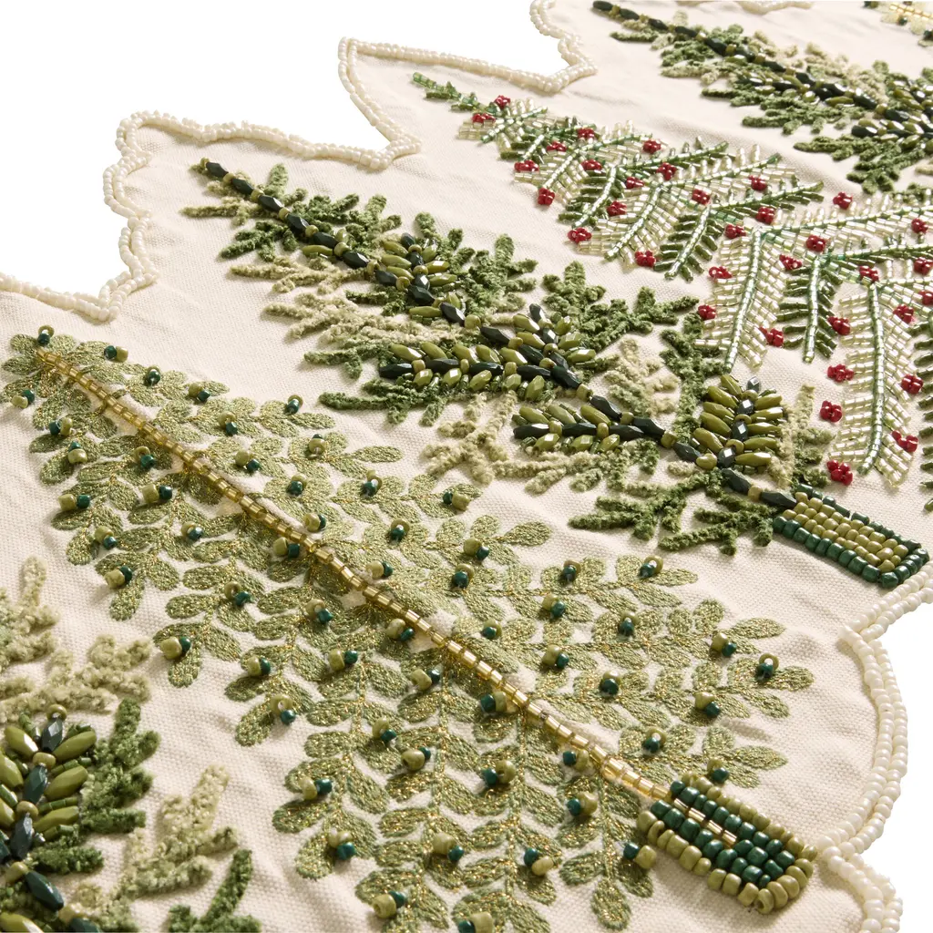 Natural Evergreen Trees Beaded Table Runner