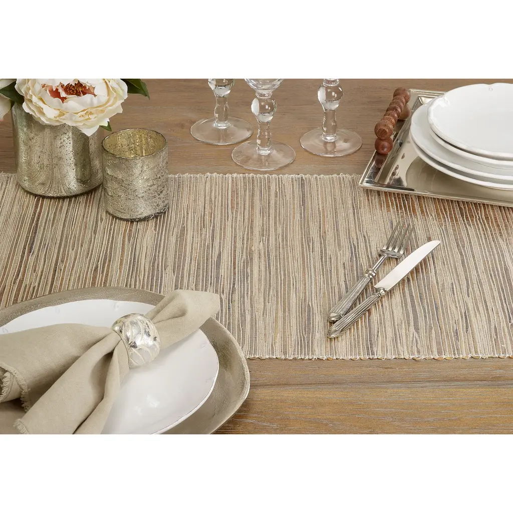 Ideal for everyday use, as well as casual entertaining, the Shimmering Woven Nubby Table Runner is highly versatile and can be easily paired with a wide range of dinnerware and table linens. From solid colors to neutral pattern and prints, it sets the perfect backdrop for various table designs. The nubby construction adds beautiful texture.Features:
