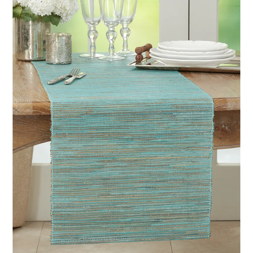 Ideal for everyday use, as well as casual entertaining, the Shimmering Woven Nubby Table Runner is highly versatile and can be easily paired with a wide range of dinnerware and table linens. From solid colors to neutral pattern and prints, it sets the perfect backdrop for various table designs. The nubby construction adds beautiful texture.Features: