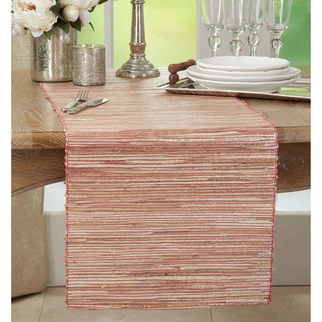 Ideal for everyday use, as well as casual entertaining, the Shimmering Woven Nubby Table Runner is highly versatile and can be easily paired with a wide range of dinnerware and table linens. From solid colors to neutral pattern and prints, it sets the perfect backdrop for various table designs. The nubby construction adds beautiful texture.Features: