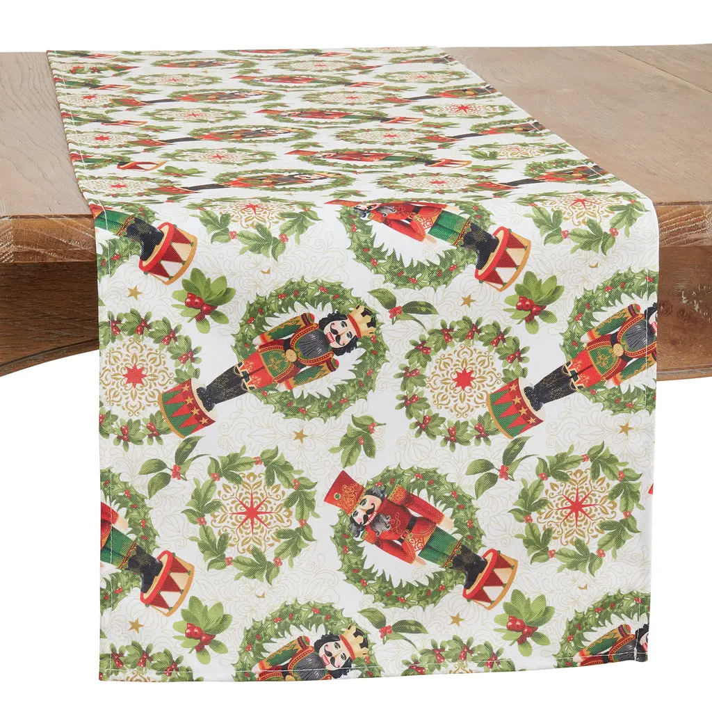 The perfect backdrop for your Christmas dinner table, this charming and whimsical Nutcracker Design Table Runner helps set a festive tabletop for the holiday season. With rich, deep tones of red, white and green, the runner is easy to pair with other Christmas-inspired table linens. You can also match it with placemats from the same collection.